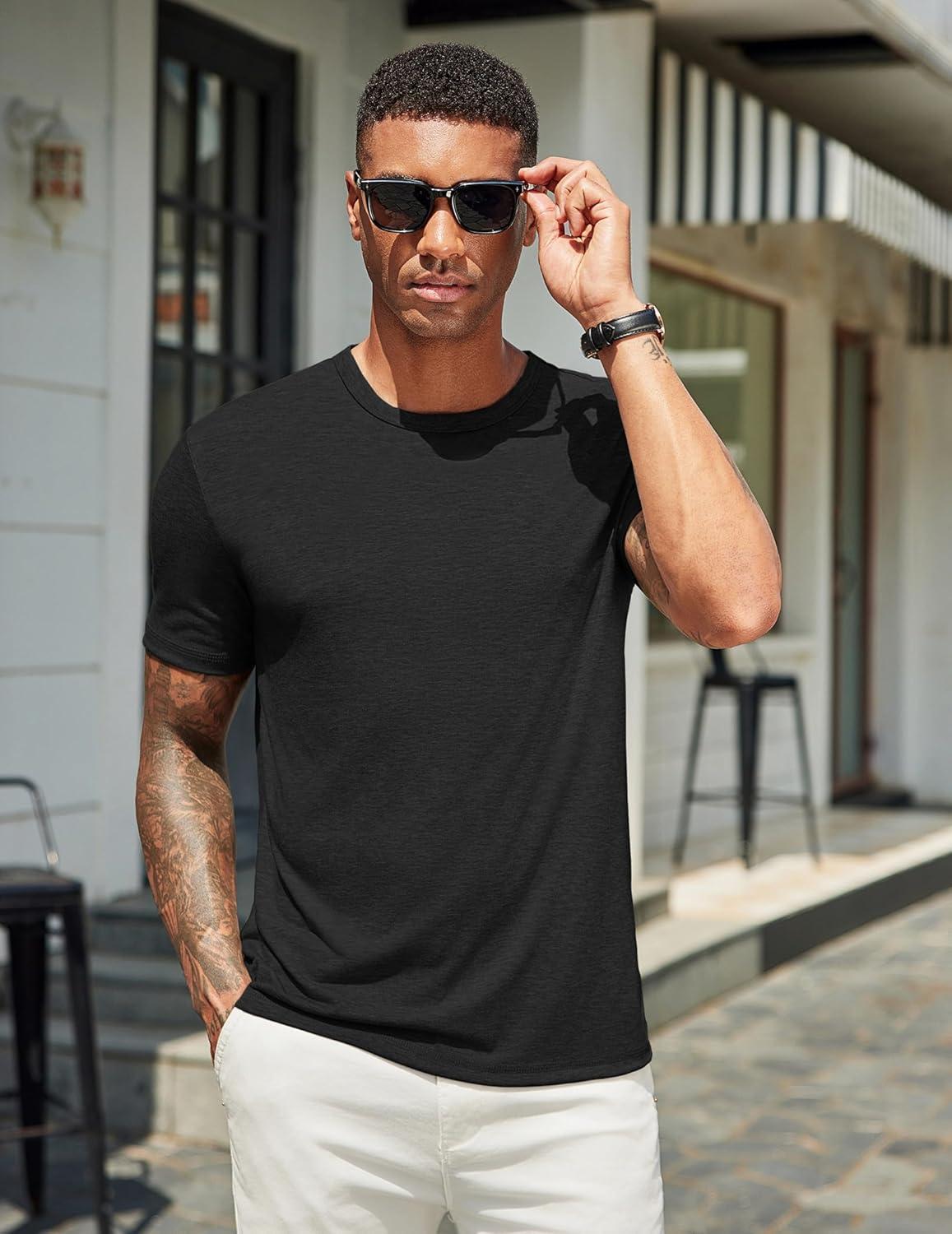 COOFANDY Men Casual Shirt Short Sleeve Summer Basic T Shirt Pocket Soild Tee Top(Black)
