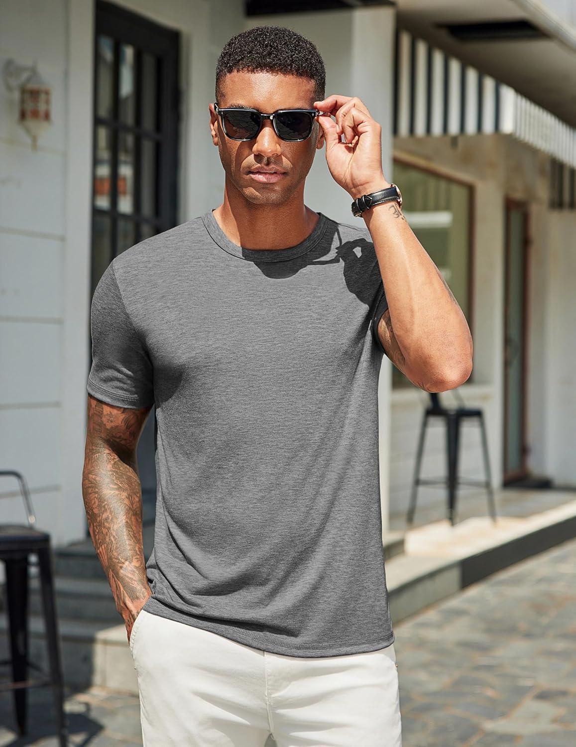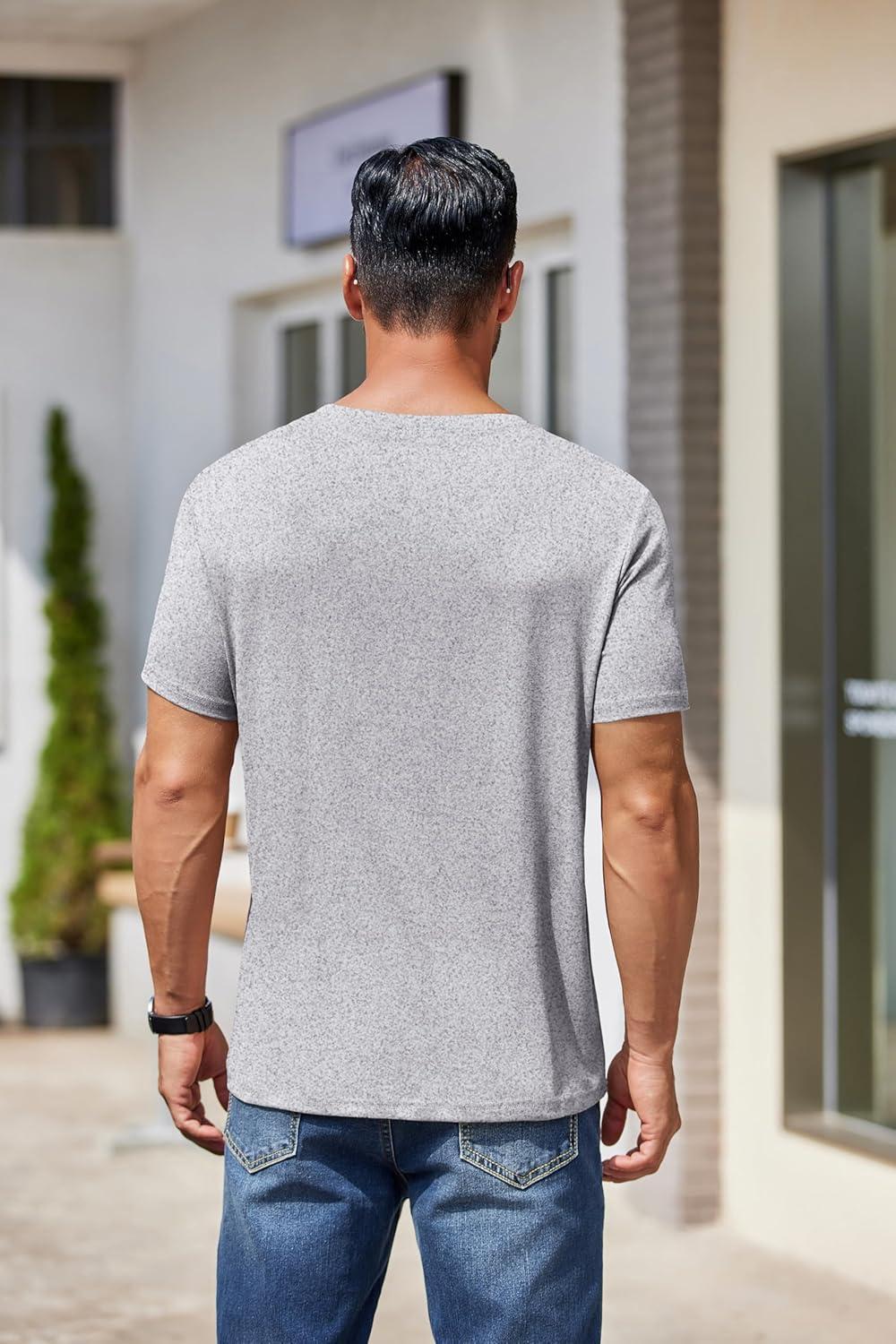 COOFANDY Men Casual Shirt Short Sleeve Summer Basic T Shirt Pocket Soild Tee Top(Light Gray)