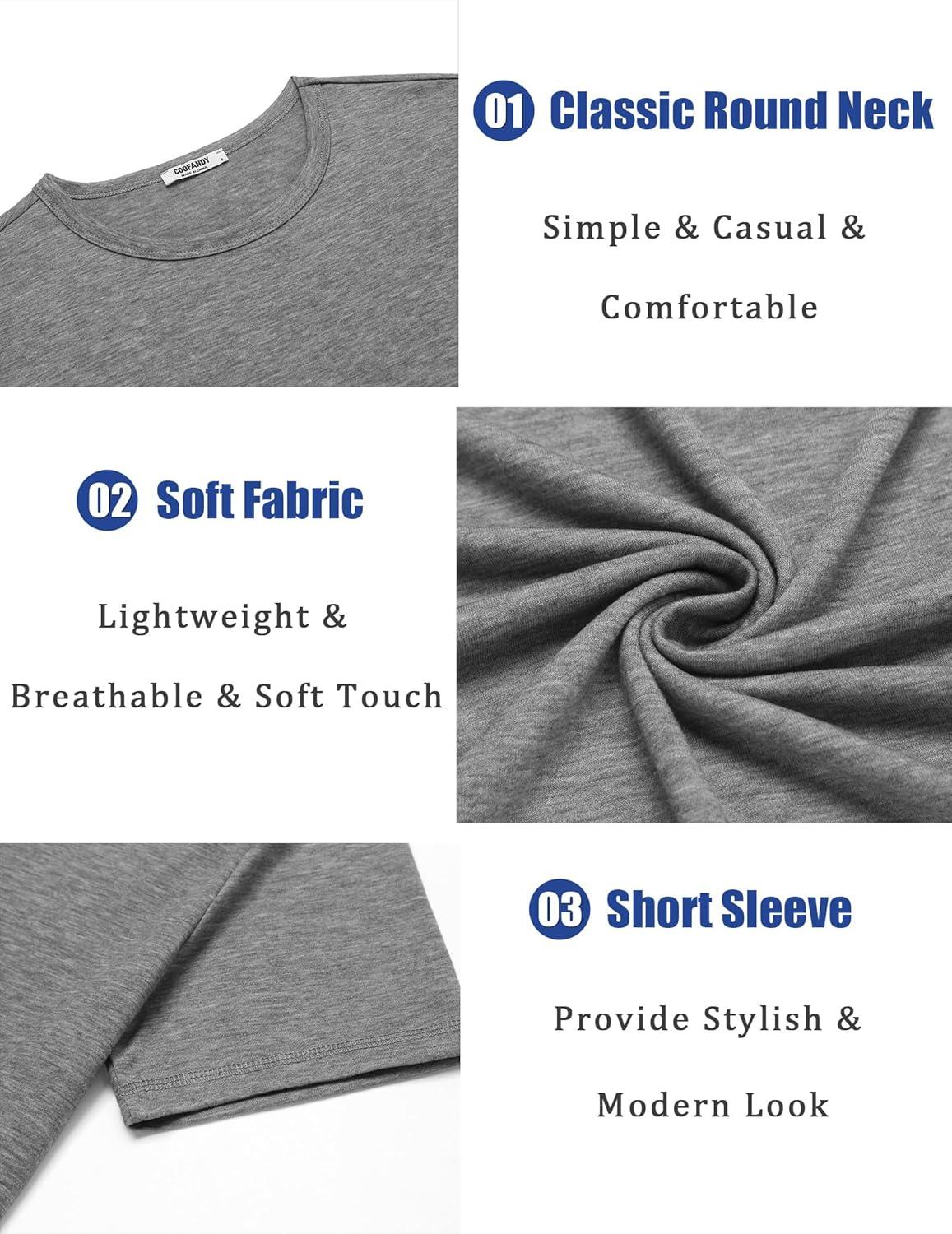 COOFANDY Men Casual Shirt Short Sleeve Summer Basic T Shirt Pocket Soild Tee Top(Grey)