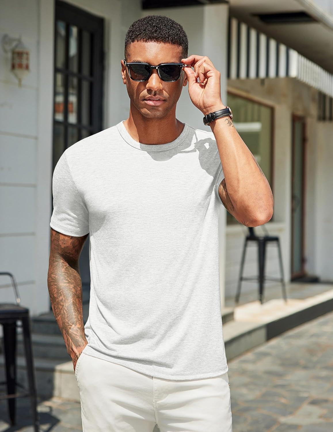 COOFANDY Men Casual Shirt Short Sleeve Summer Basic T Shirt Pocket Soild Tee Top(White)