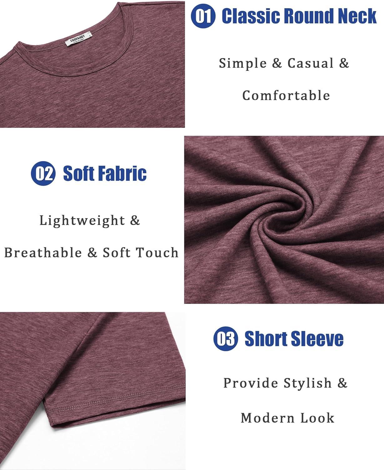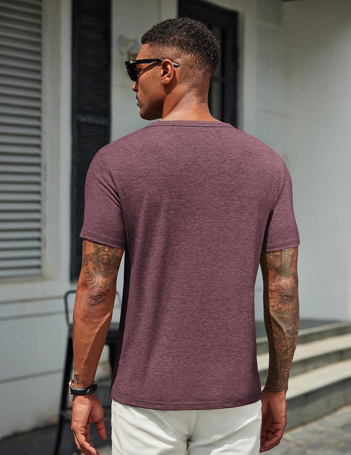 COOFANDY Men Casual Shirt Short Sleeve Summer Basic T Shirt Pocket Soild Tee Top(Wine)