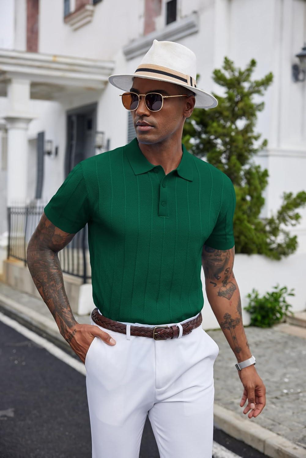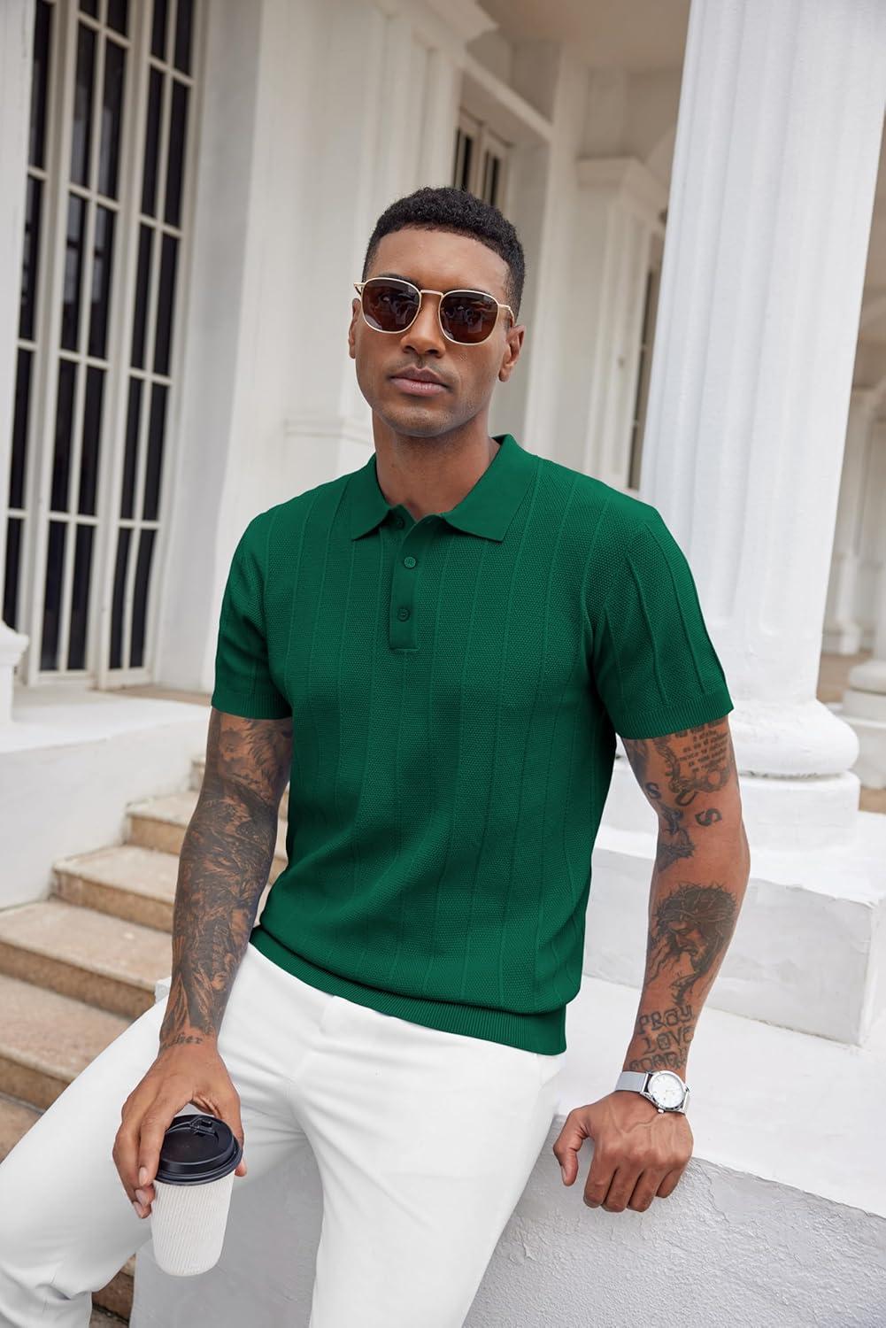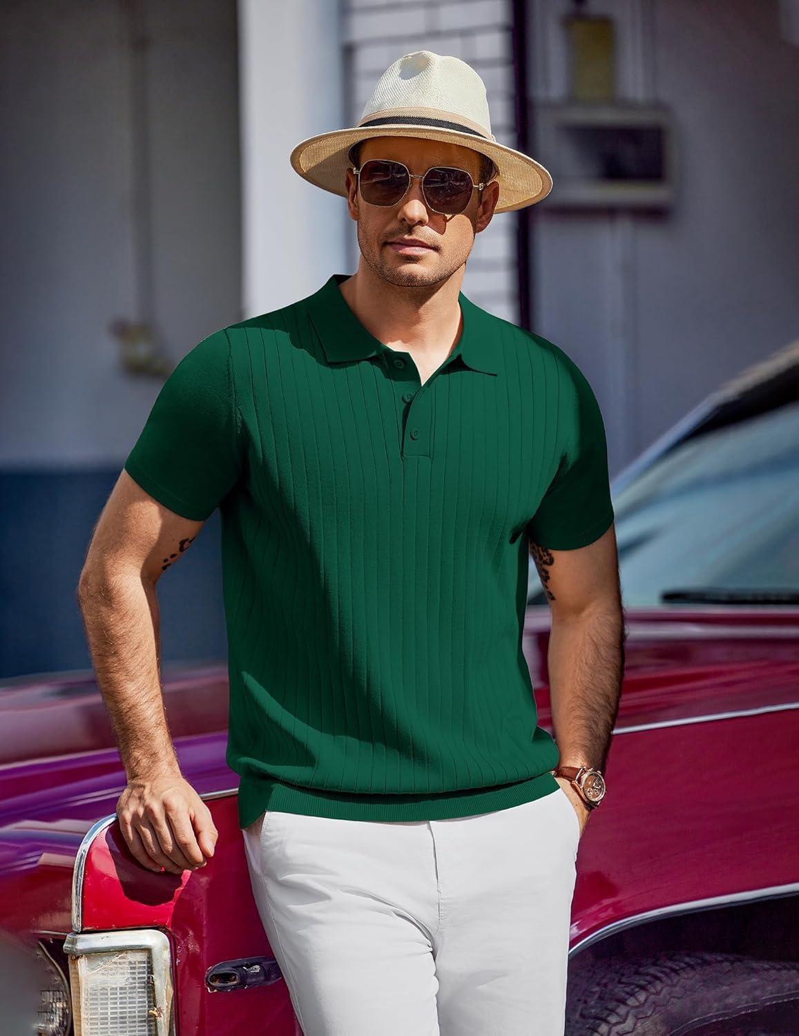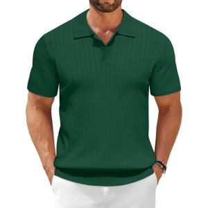 COOFANDY Men’s Zipper Polo Shirts Short Sleeve Ribbed Knit Polo T Shirts Fashion Casual Golf Shirts(Hunter Green)