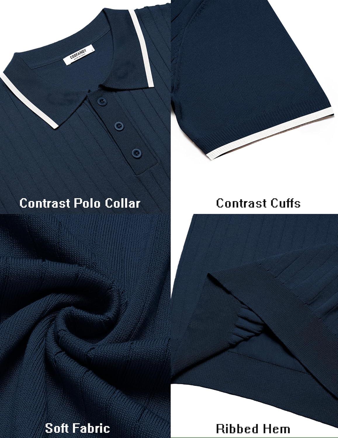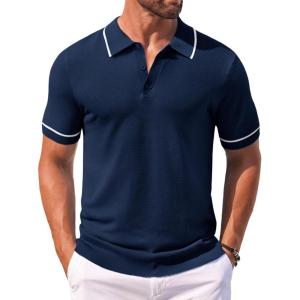 COOFANDY Men’s Zipper Polo Shirt Casual Knit Short Sleeve Polo T Shirt Classic Fit Shirts(Navy Blue-white)
