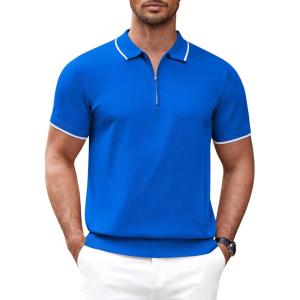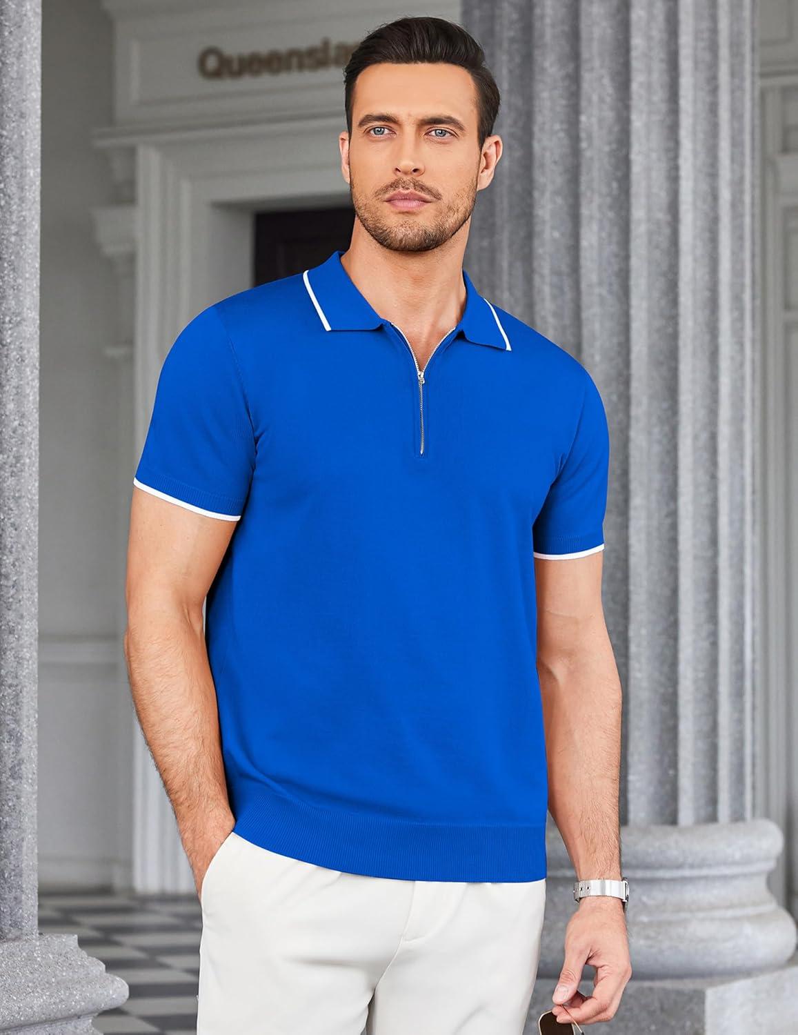 COOFANDY Men’s Zipper Polo Shirt Casual Knit Short Sleeve Polo T Shirt Classic Fit Shirts(Royal Blue)