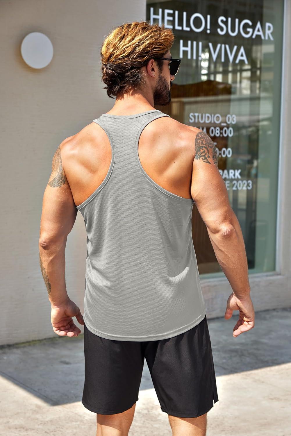COOFANDY Men’s 3 Pack Gym Tank Tops Y-Back Workout Muscle Tee Sleeveless Fitness Bodybuilding T Shirts(Black/White/Grey)