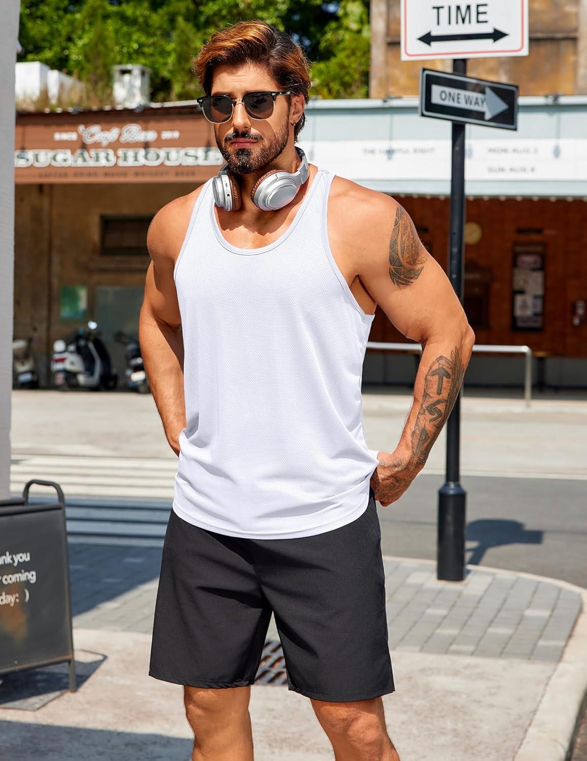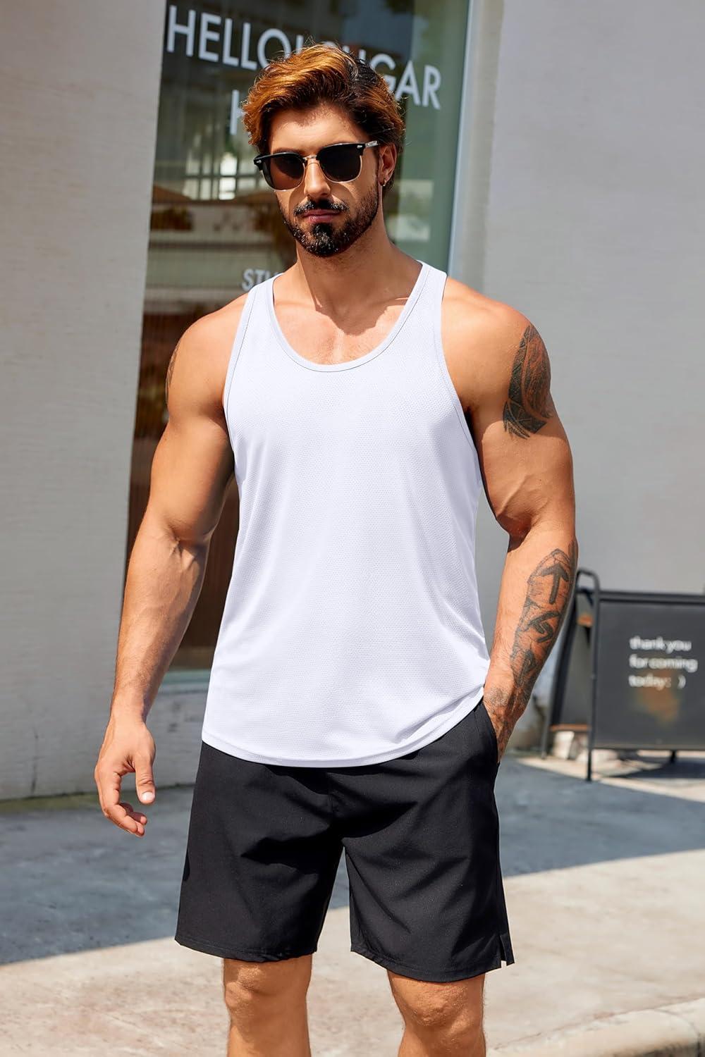 COOFANDY Mens Tank Top UPF 50+ Quick Dry Sleeveless Shirts Summer Workout Muscle T Shirt Cool Swim Beach Top(Black/White)
