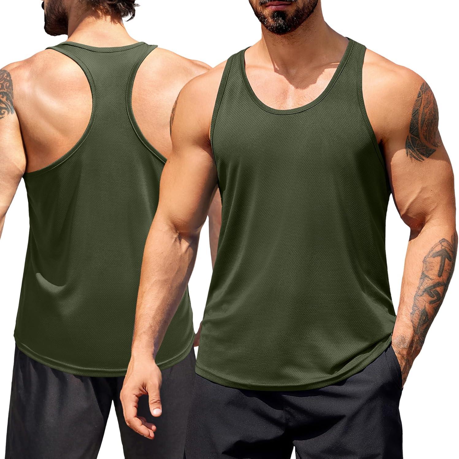 COOFANDY Men’s Workout Tank Tops 2 Pack Y Back Sleeveless Shirts Gym Muscle T Shirt Bodybuidling Athletic Stringer Tee(Army Green)