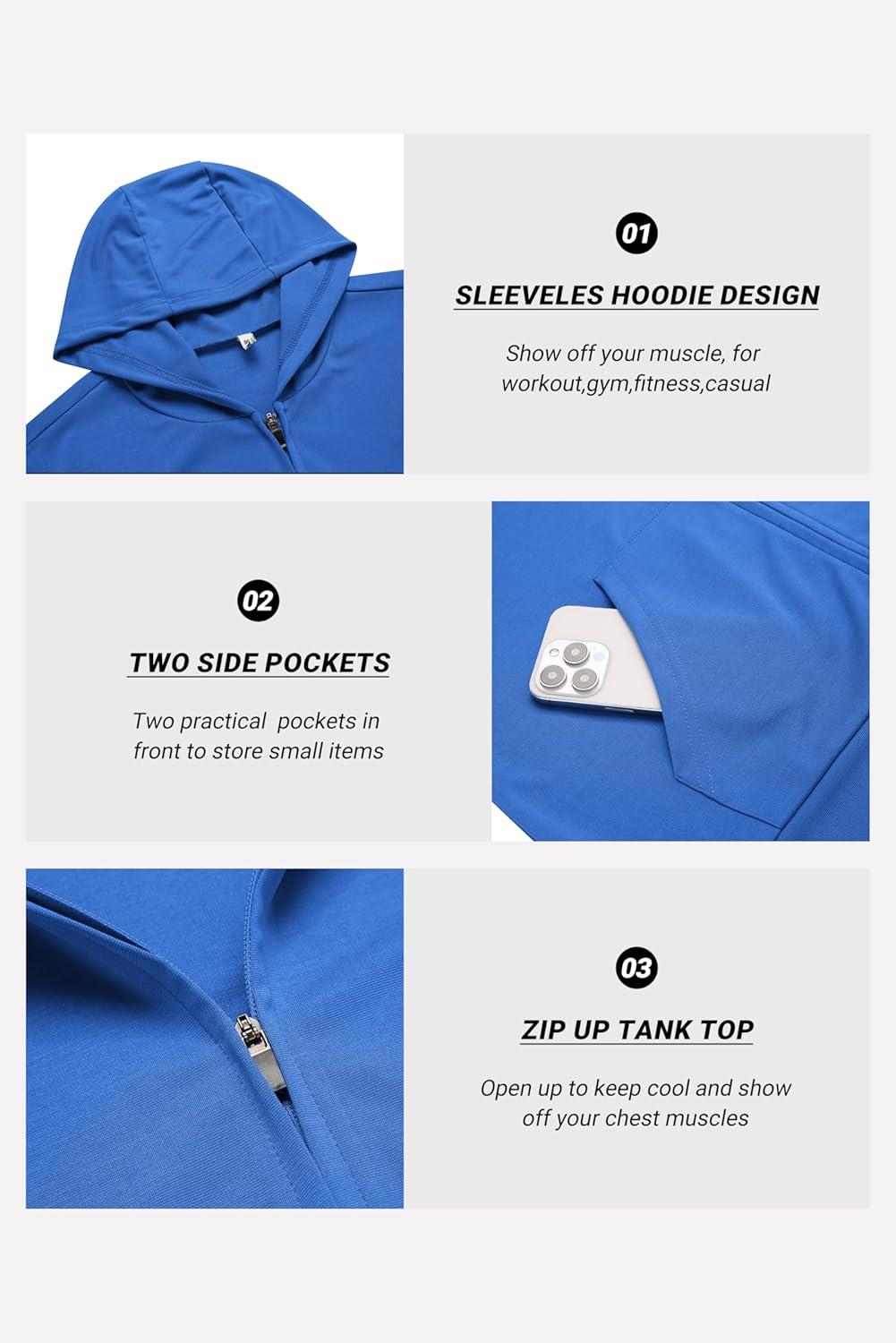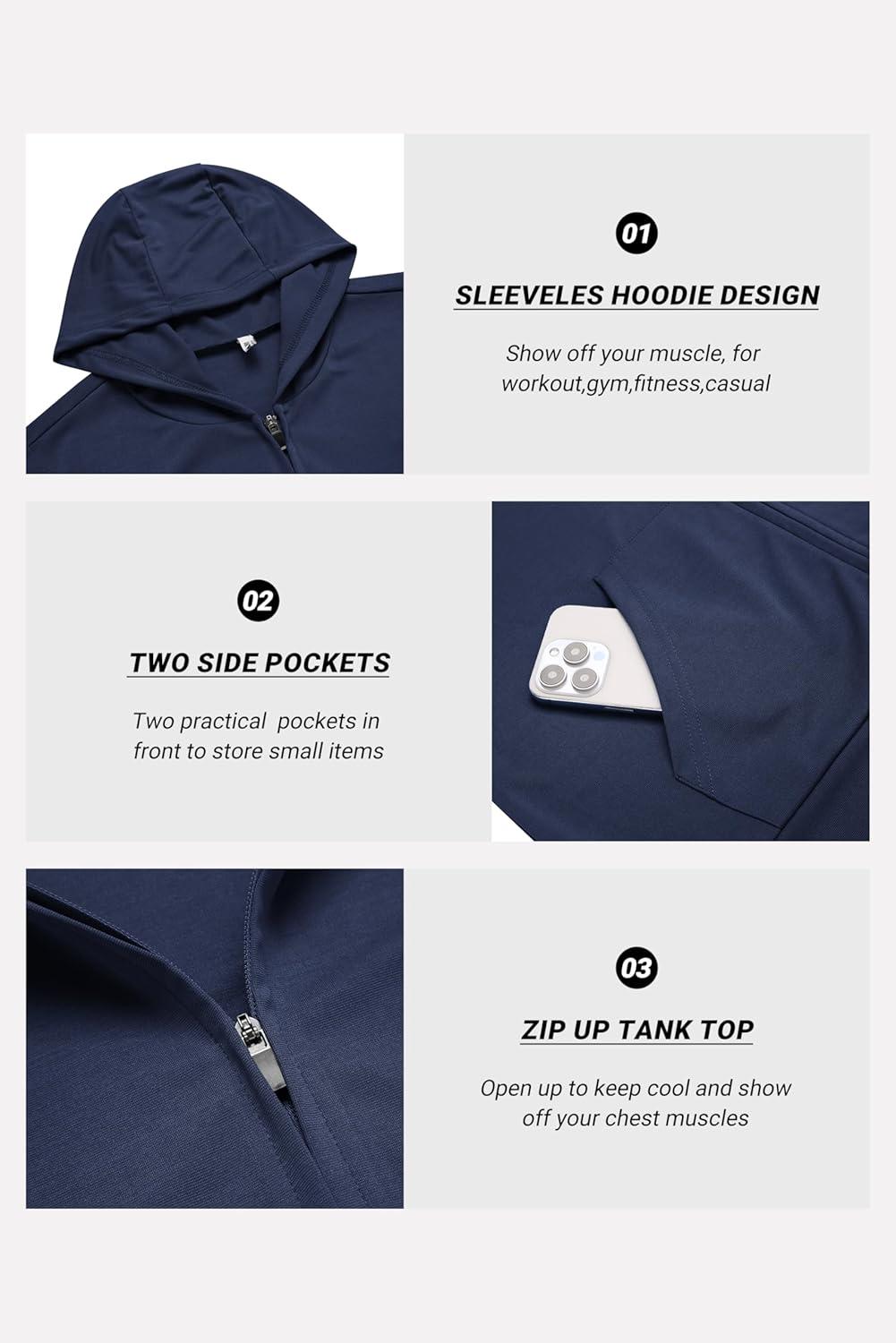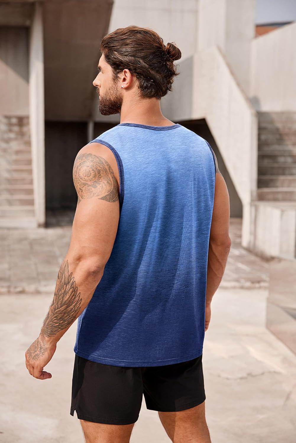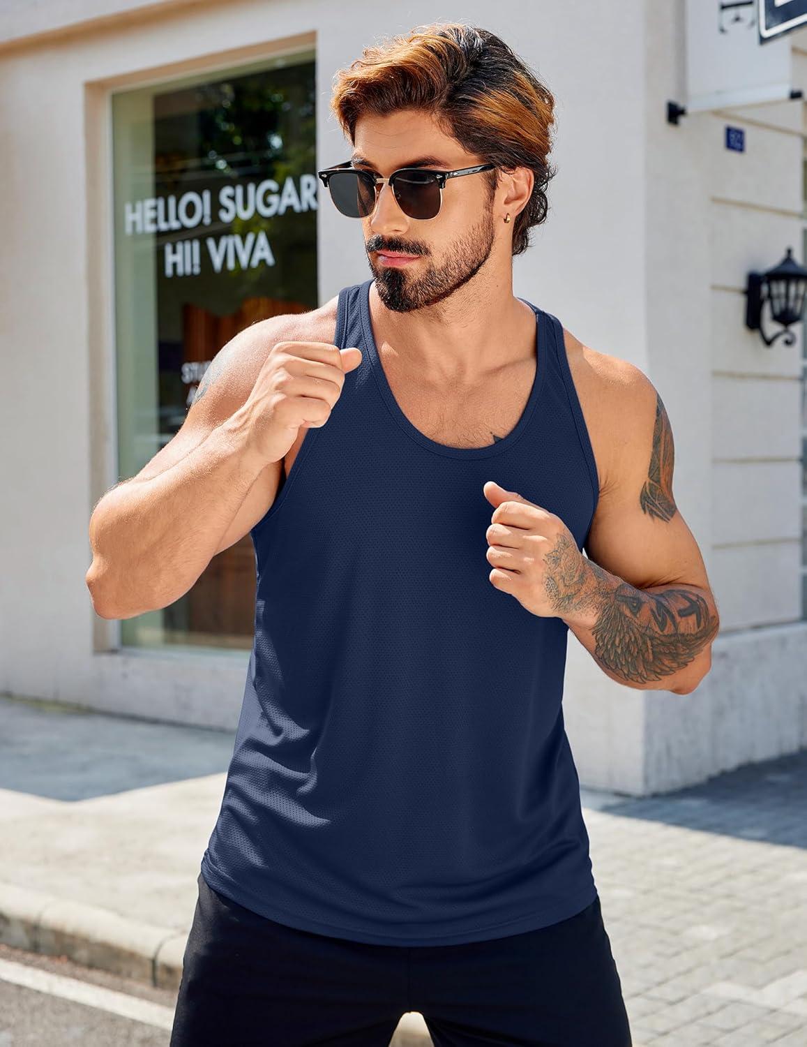 COOFANDY Mens Tank Top UPF 50+ Quick Dry Sleeveless Shirts Summer Workout Muscle T Shirt Cool Swim Beach Top(Navy/Blue)