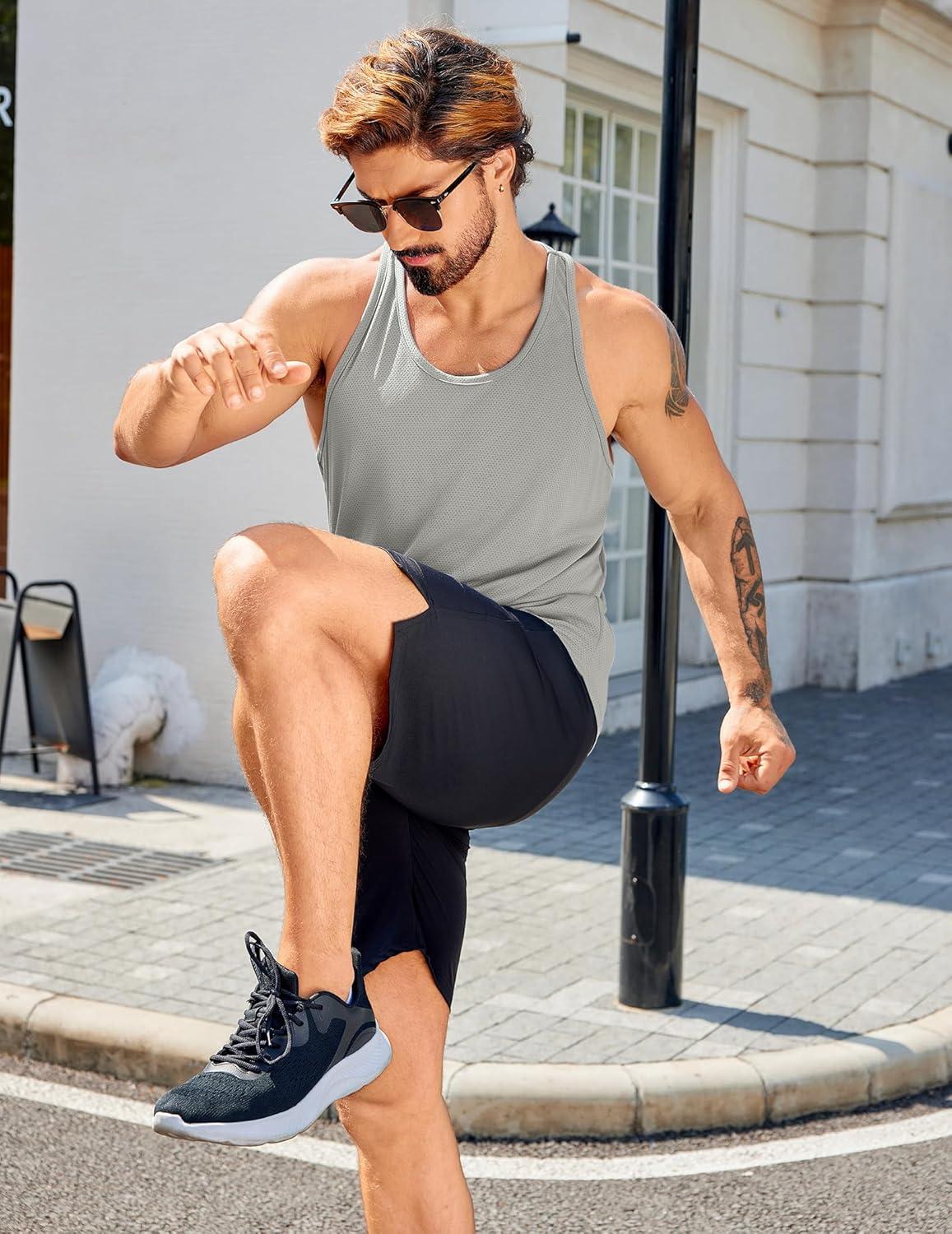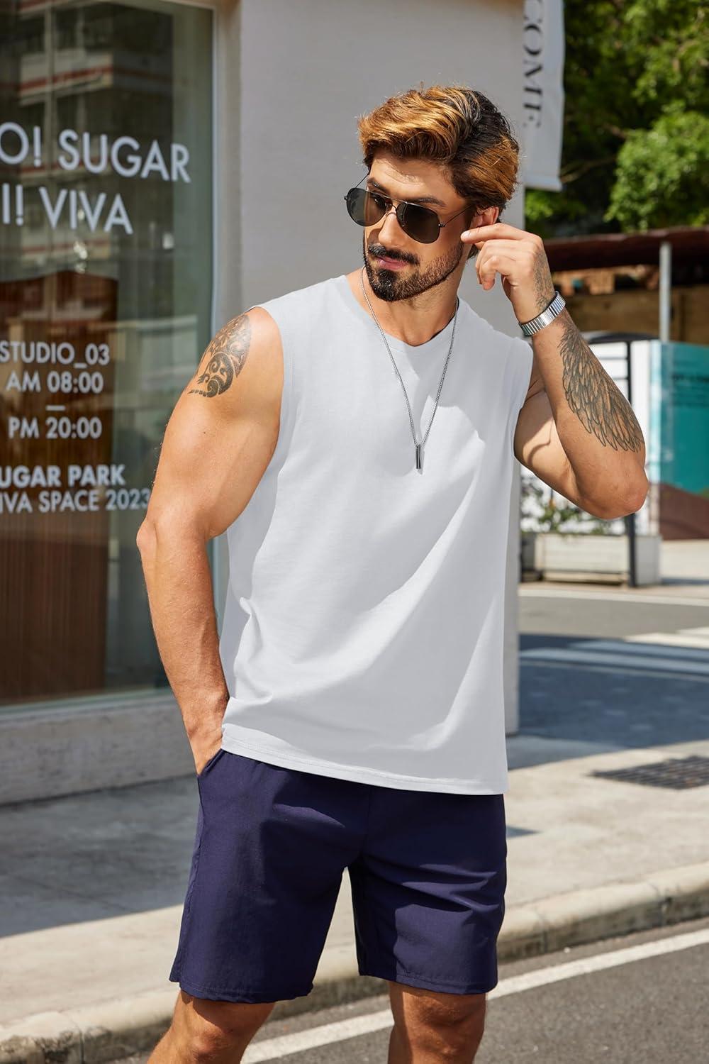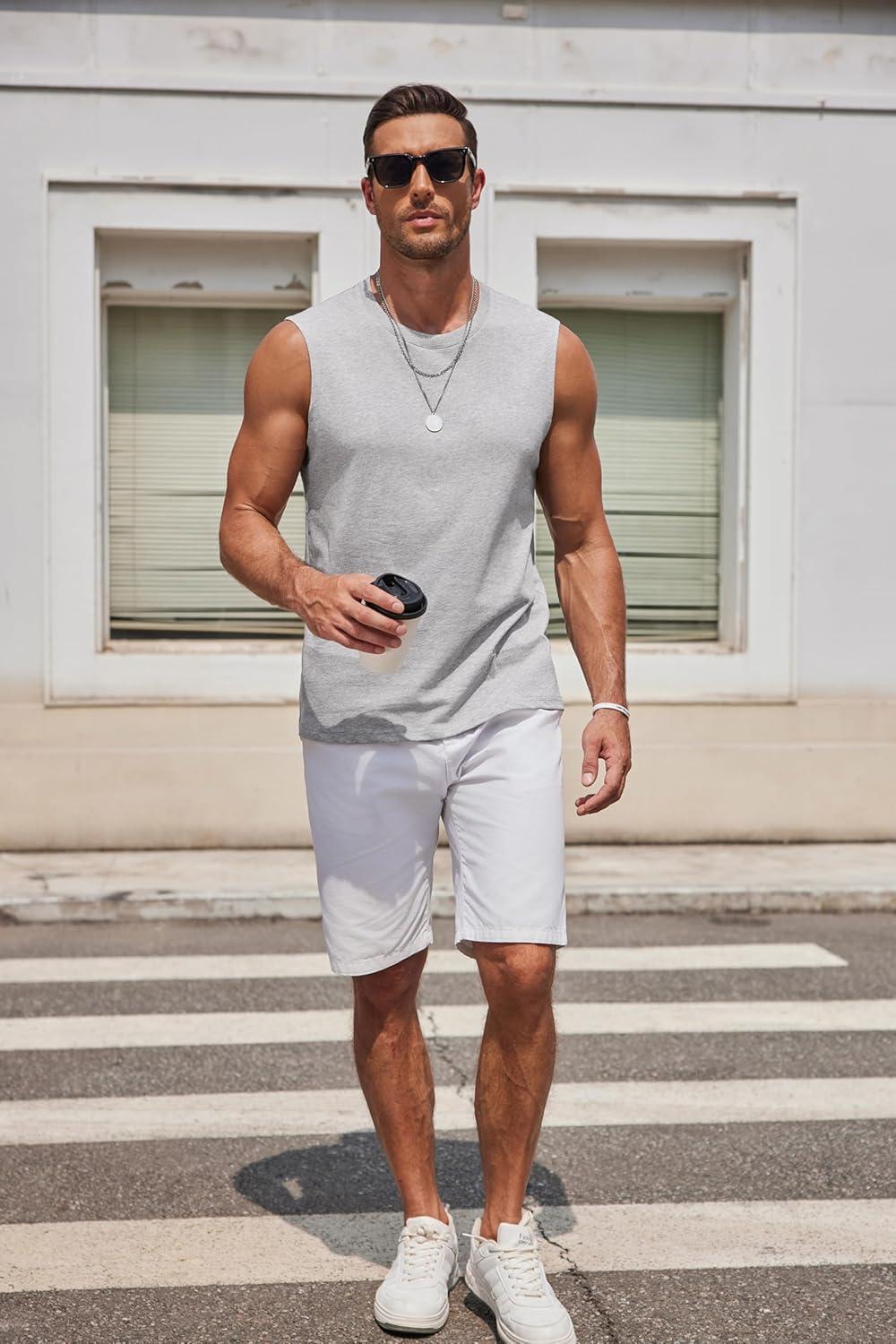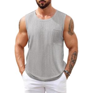 COOFANDY Mens Tank Tops Summer Beach Sleeveless Muscle Shirts Casual Knit Tanks Workout Gym Tee(Medium Gray)