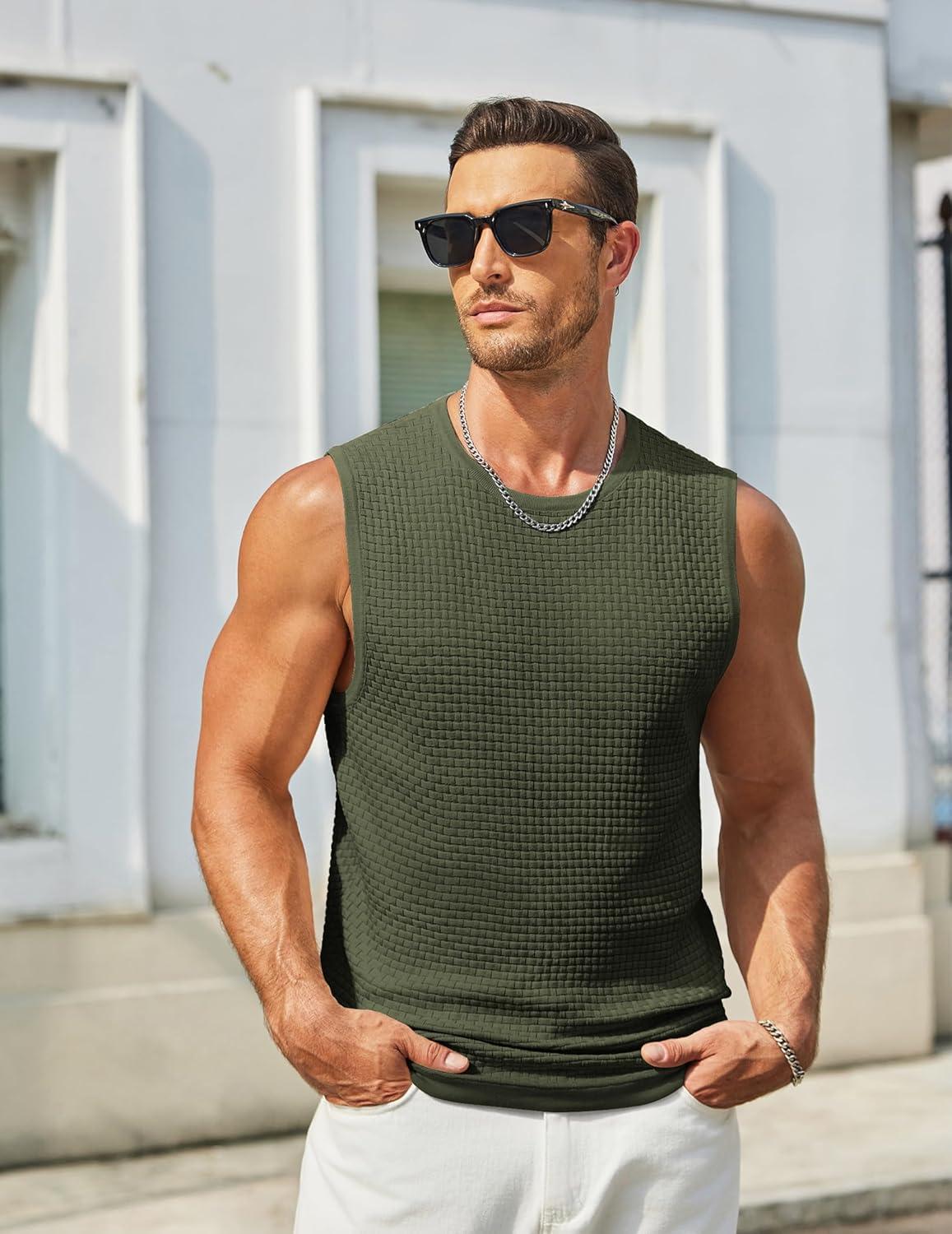 COOFANDY Mens Casual Knitted Tank Tops Crew Neck Sleeveless Muscle T Shirts Summer Beach Tops(Army Green)