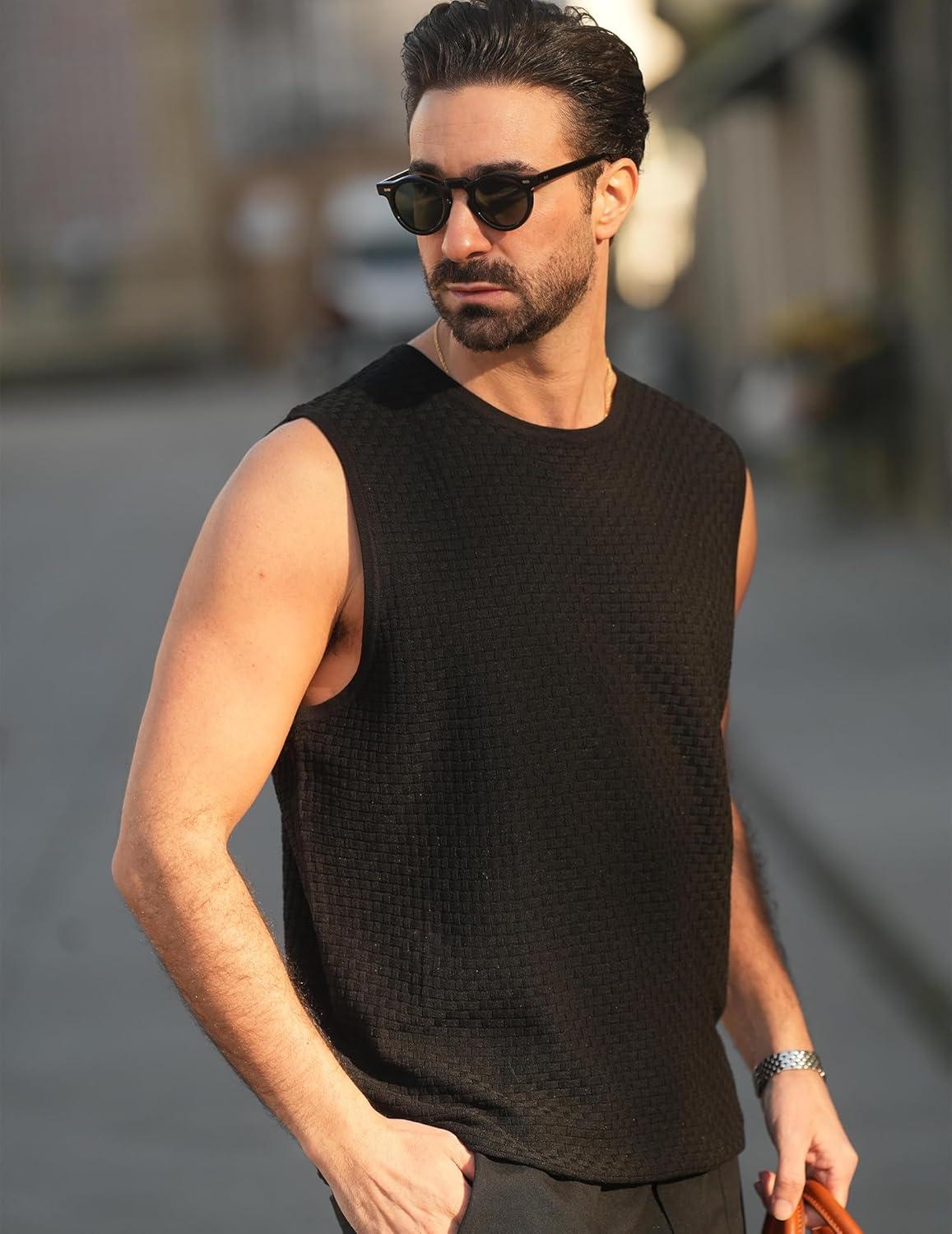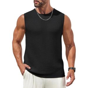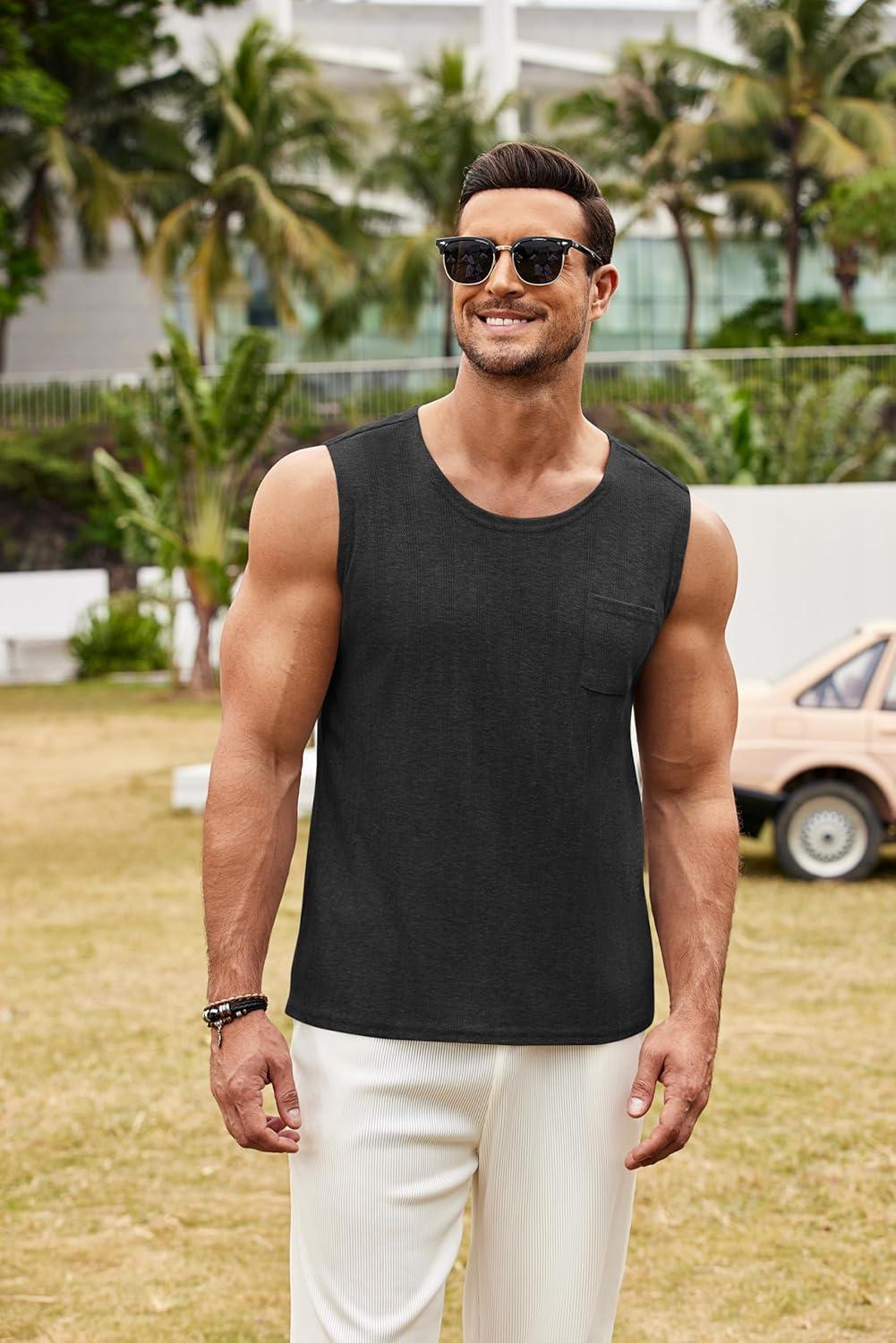 COOFANDY Mens Casual Knitted Tank Tops Crew Neck Sleeveless Muscle T Shirts Summer Beach Tops(Black)