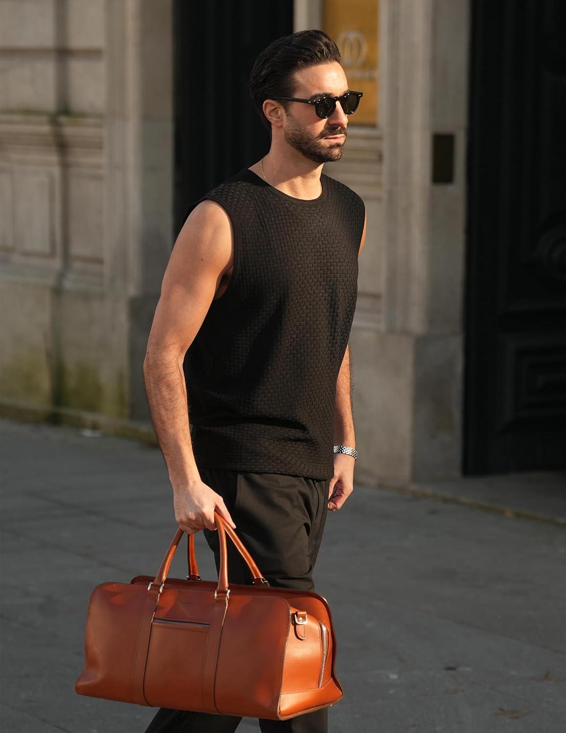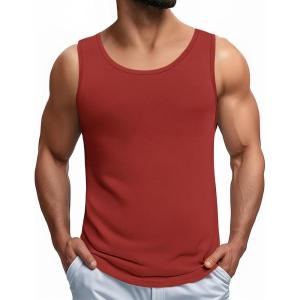 COOFANDY Mens Casual Knitted Tank Tops Crew Neck Sleeveless Muscle T Shirts Summer Beach Tops(Brown)