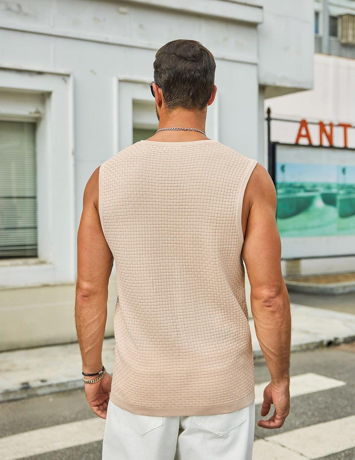 COOFANDY Mens Casual Knitted Tank Tops Crew Neck Sleeveless Muscle T Shirts Summer Beach Tops(Khaki)