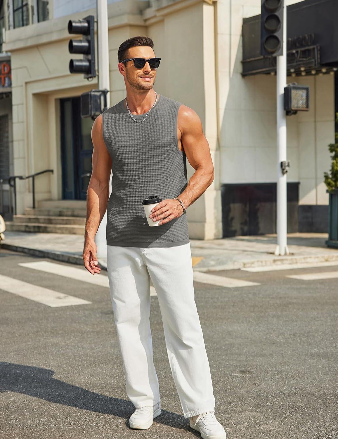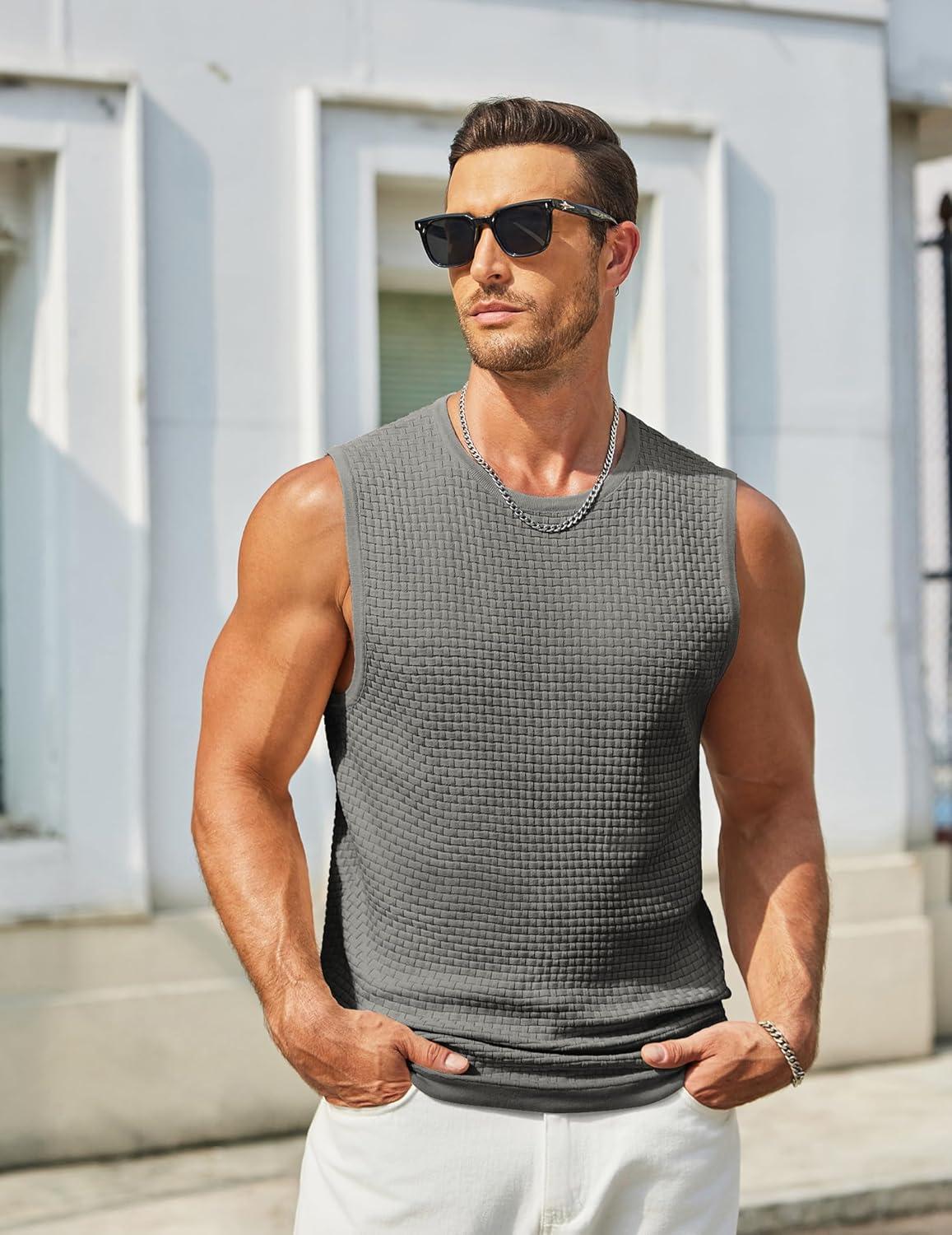 COOFANDY Mens Casual Knitted Tank Tops Crew Neck Sleeveless Muscle T Shirts Summer Beach Tops(Grey)
