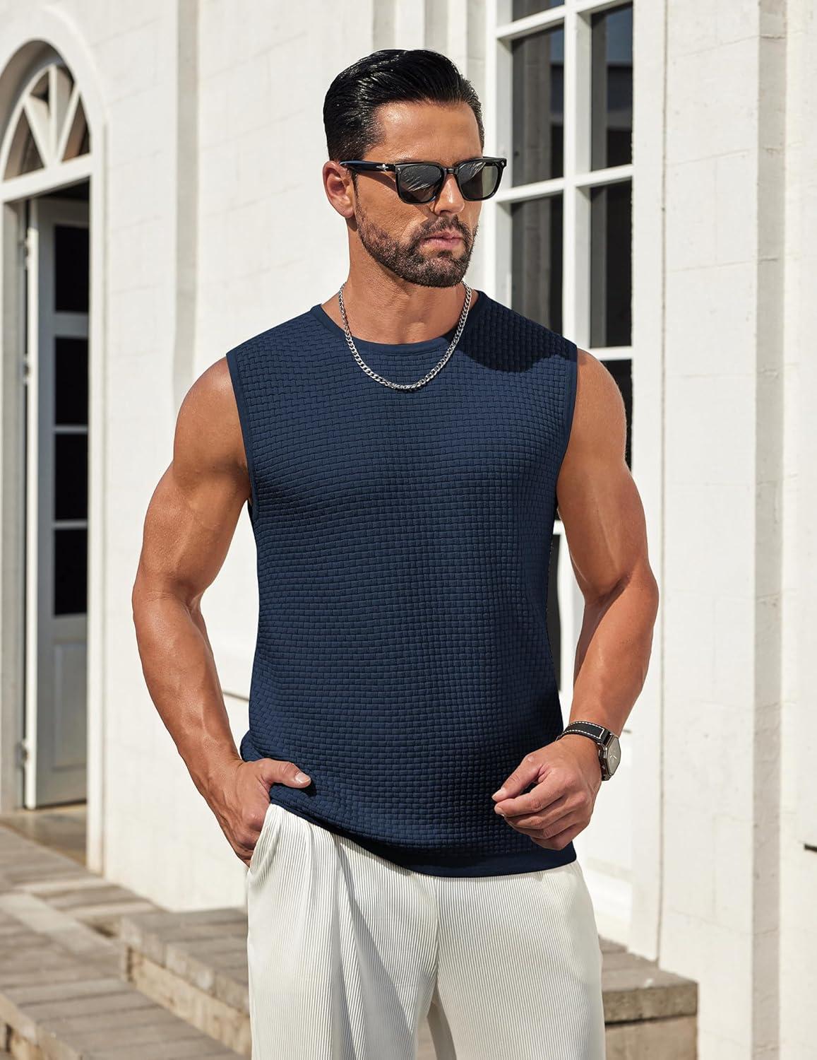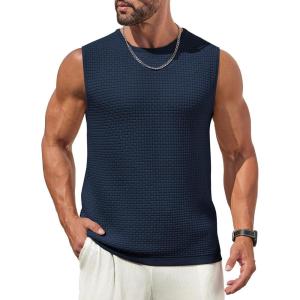 COOFANDY Mens Casual Knitted Tank Tops Crew Neck Sleeveless Muscle T Shirts Summer Beach Tops(Navy Blue)