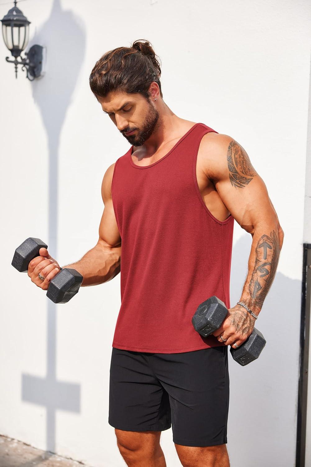 COOFANDY Men’s Workout Tank Tops 1/2 Pack Dry Fit Sleeveless Muscle Gym Shirts Stretch Bodybuilding Tee(Wine Red)