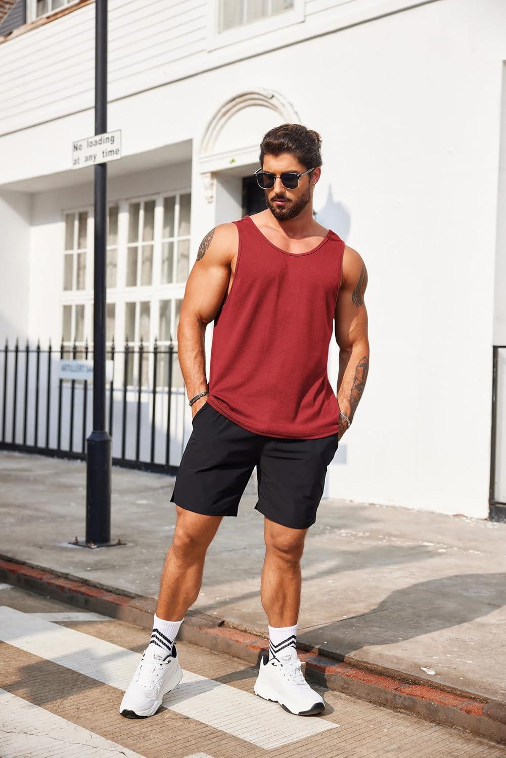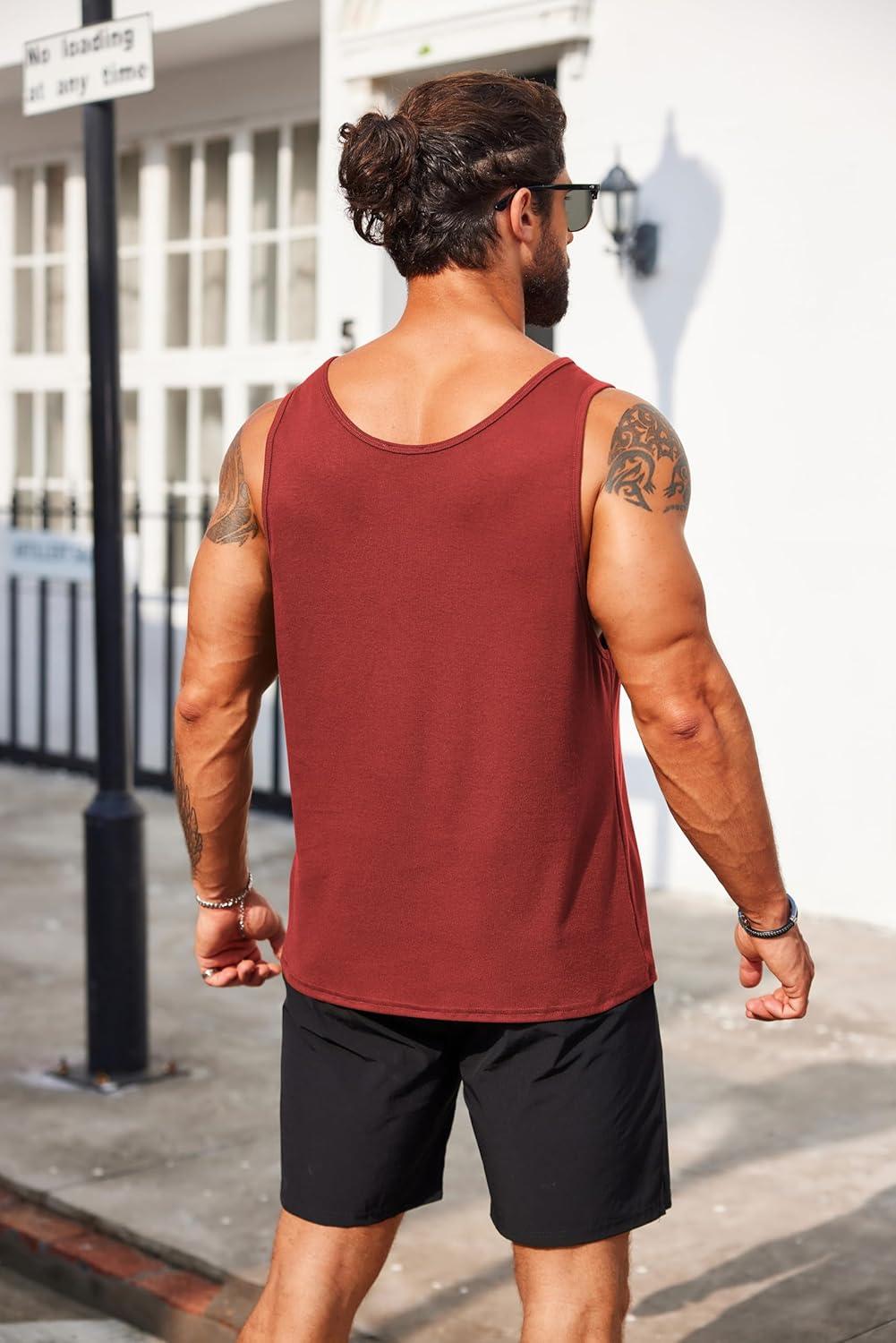 COOFANDY Mens Tank Top UPF 50+ Quick Dry Sleeveless Shirts Summer Workout Muscle T Shirt Cool Swim Beach Top(Black/ Wine Red)
