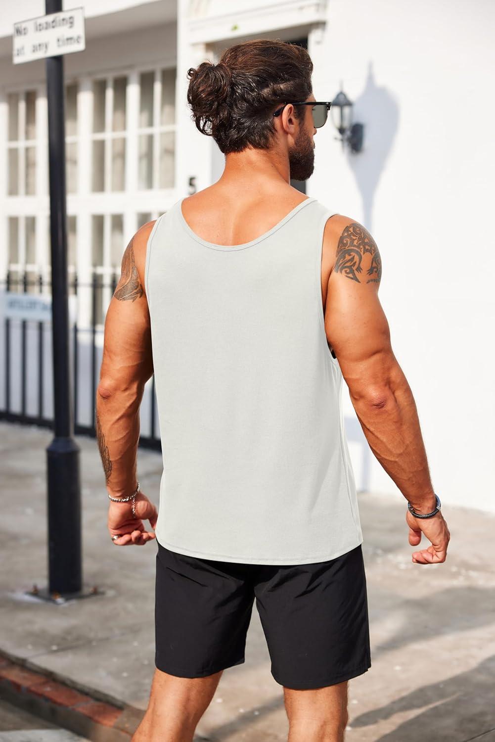 COOFANDY Mens Casual Tank Tops Moisture Wicking Muscle Sleeveless Shirts Soft Bamboo Viscose Tank Shirt 2 Pack(Black/Grey)