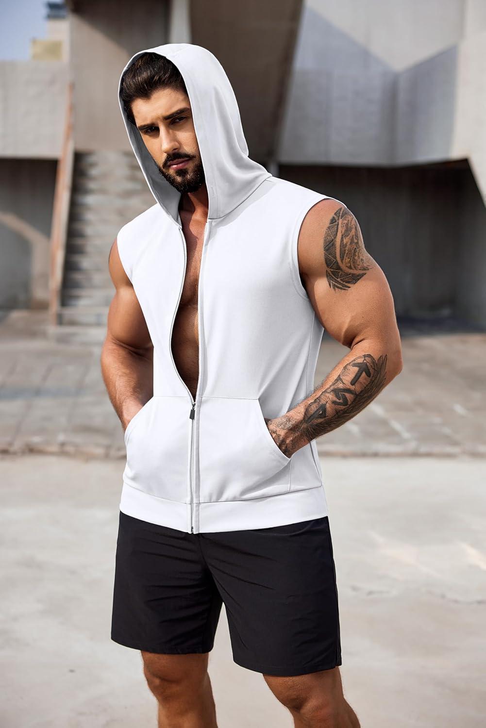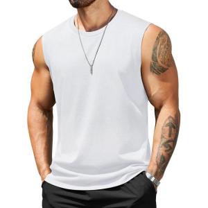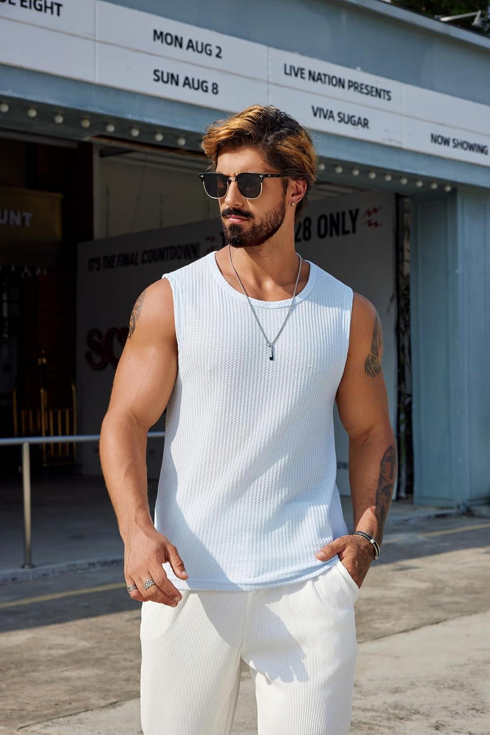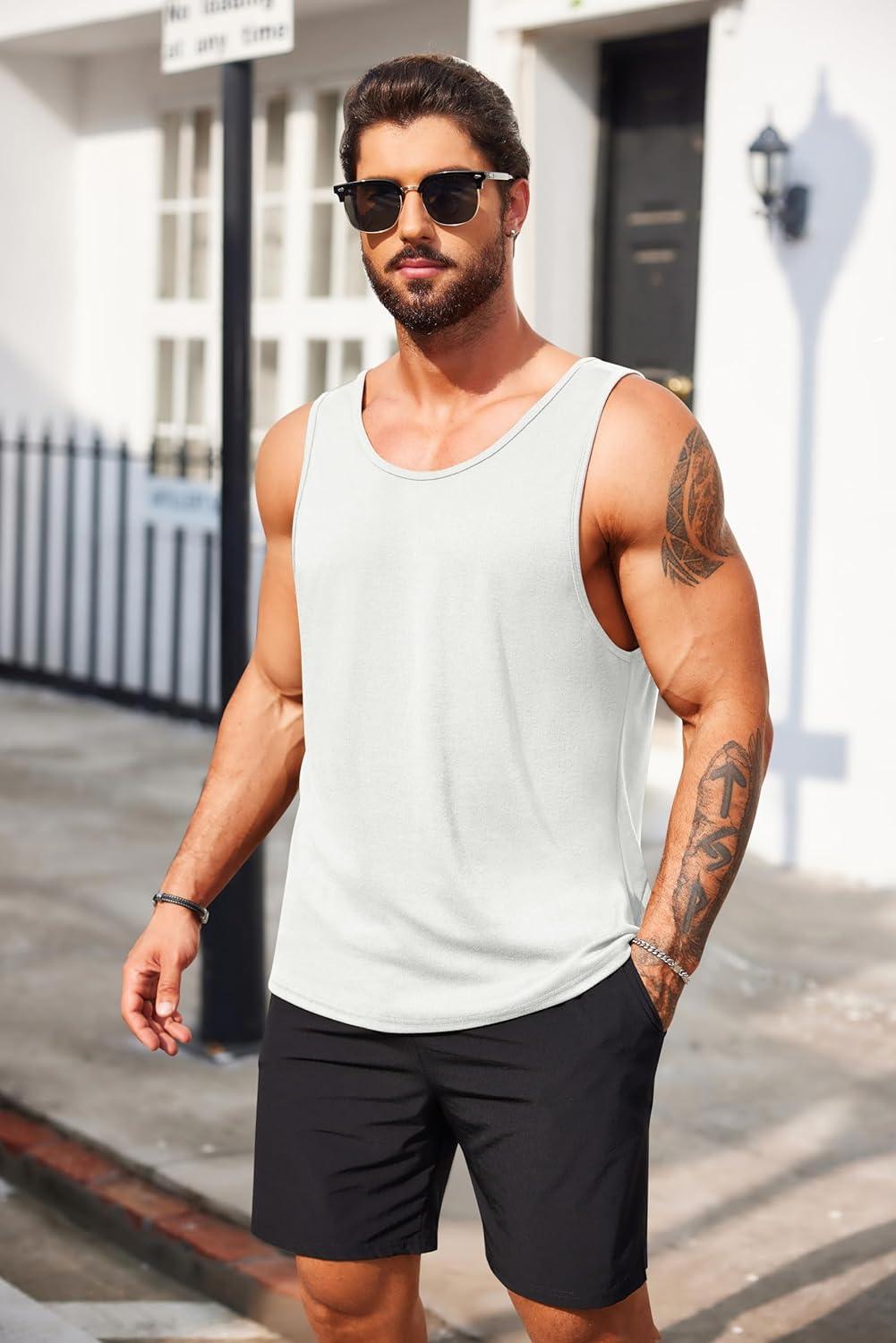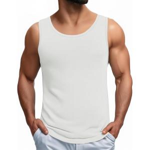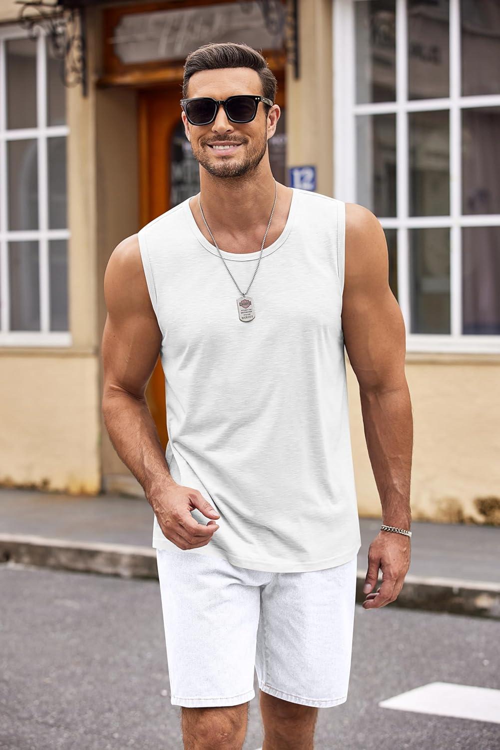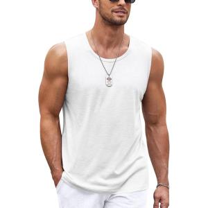 COOFANDY Mens Tank Tops Summer Beach Sleeveless Muscle Shirts Casual Knit Tanks Workout Gym Tee(White)