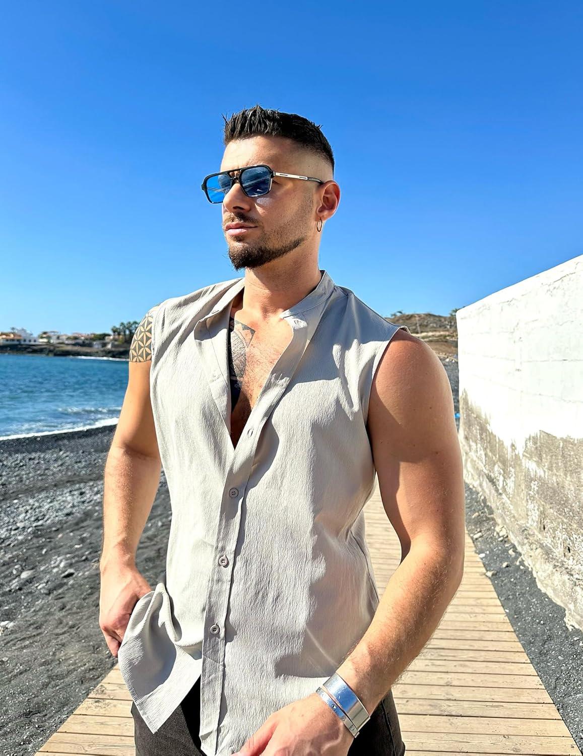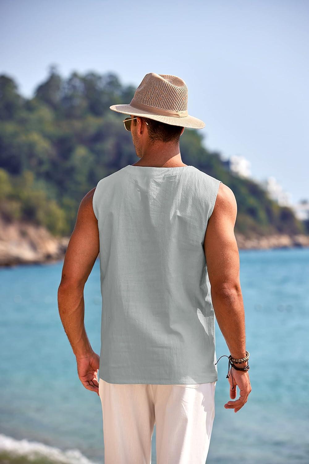 COOFANDY Sleeveless Beach Shirts for Men Summer Tank Shirts Casual Henley Tank Top(Light Grey)