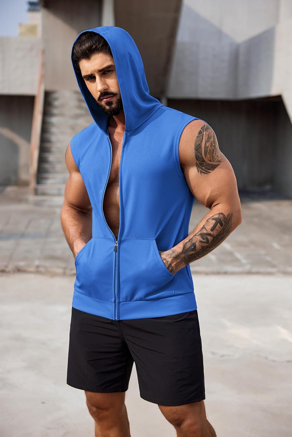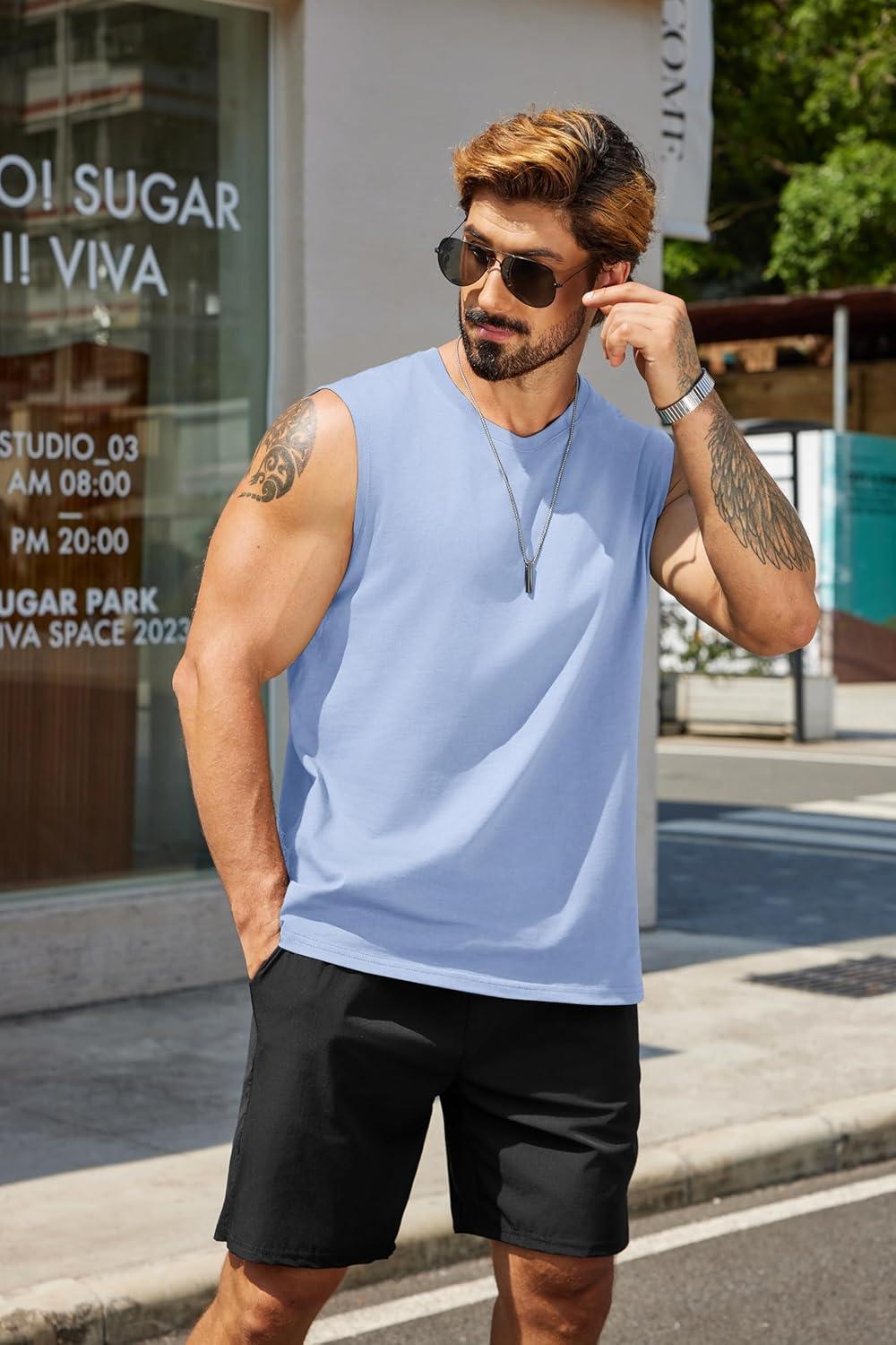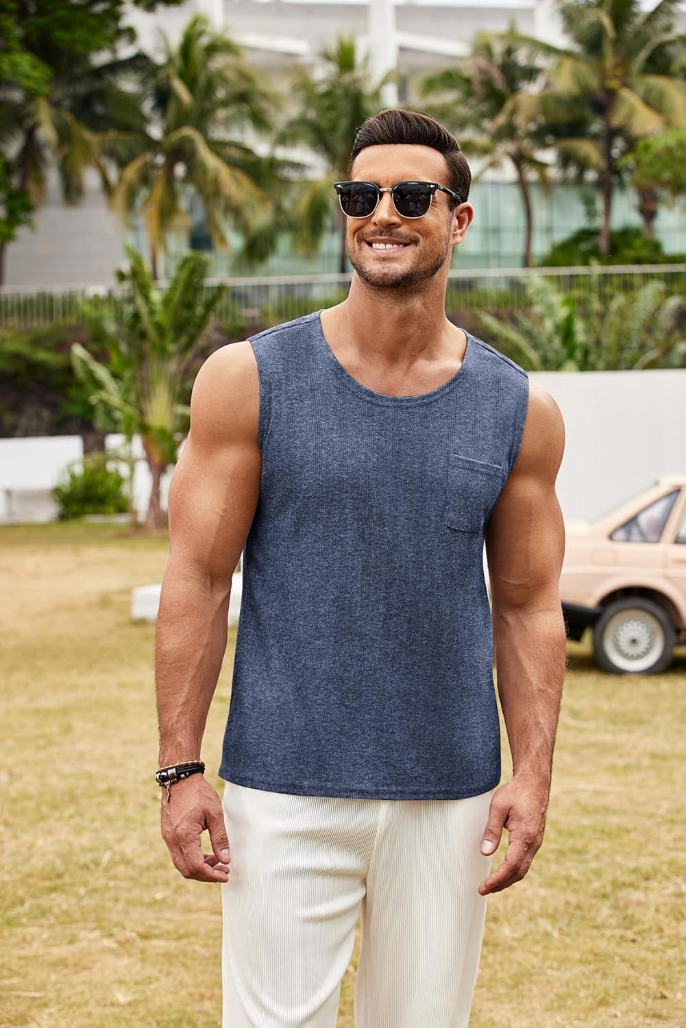 COOFANDY Mens Tank Tops Summer Beach Sleeveless Muscle Shirts Casual Knit Tanks Workout Gym Tee(Blue)