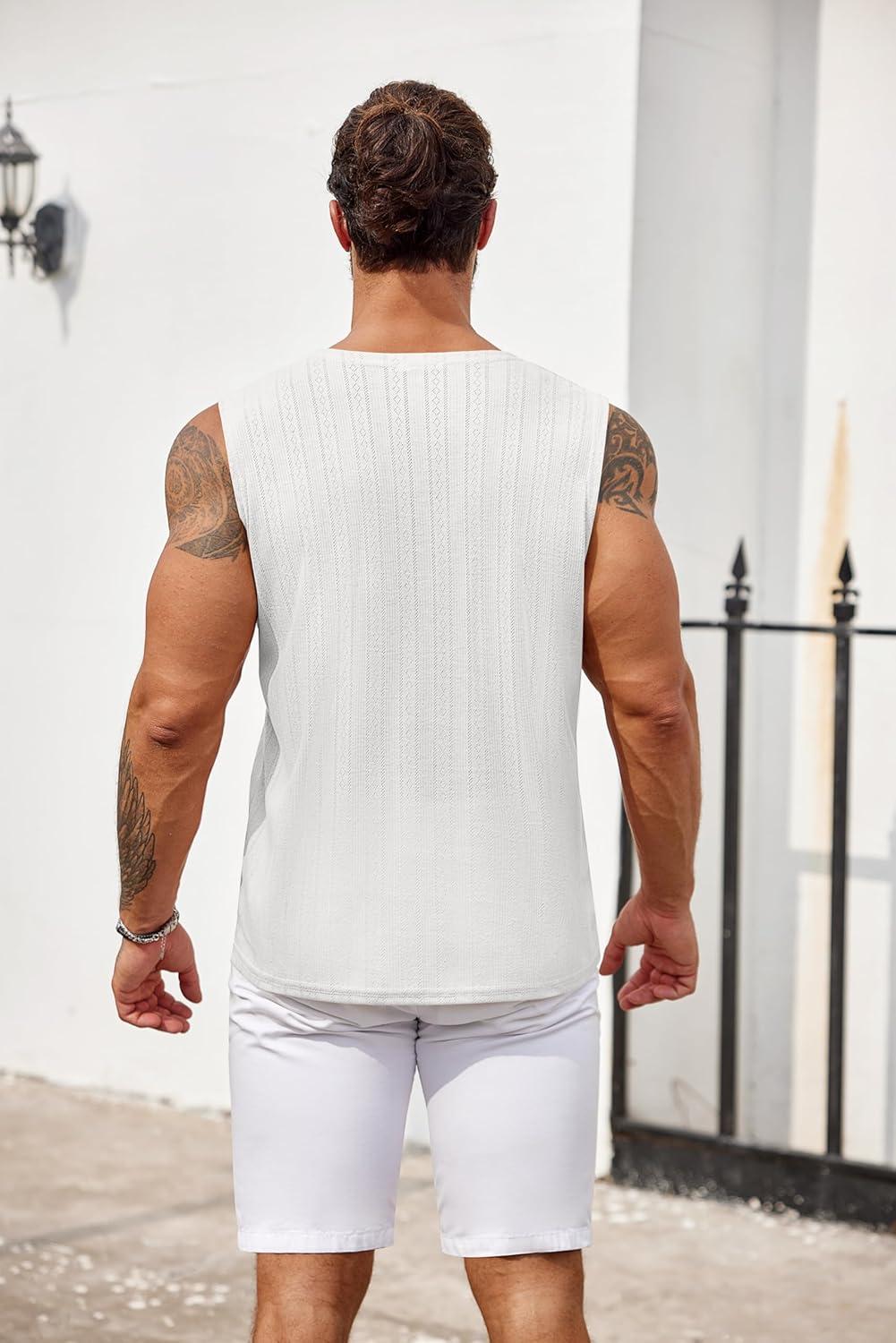 COOFANDY Sleeveless Beach Shirts for Men Summer Tank Shirts Casual Henley Tank Top(White)