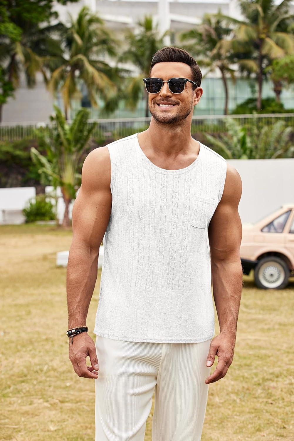 COOFANDY Men’s Casual Tank Tops Knit Sleeveless Shirt Summer Beach Tank Shirt Breathable Muscle T Shirts(White)