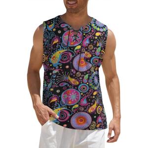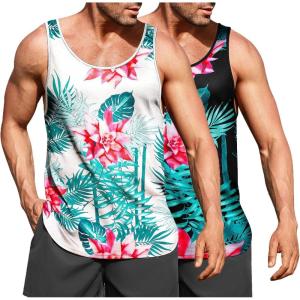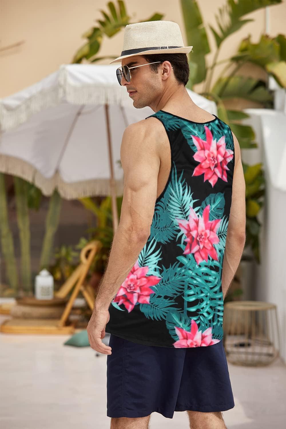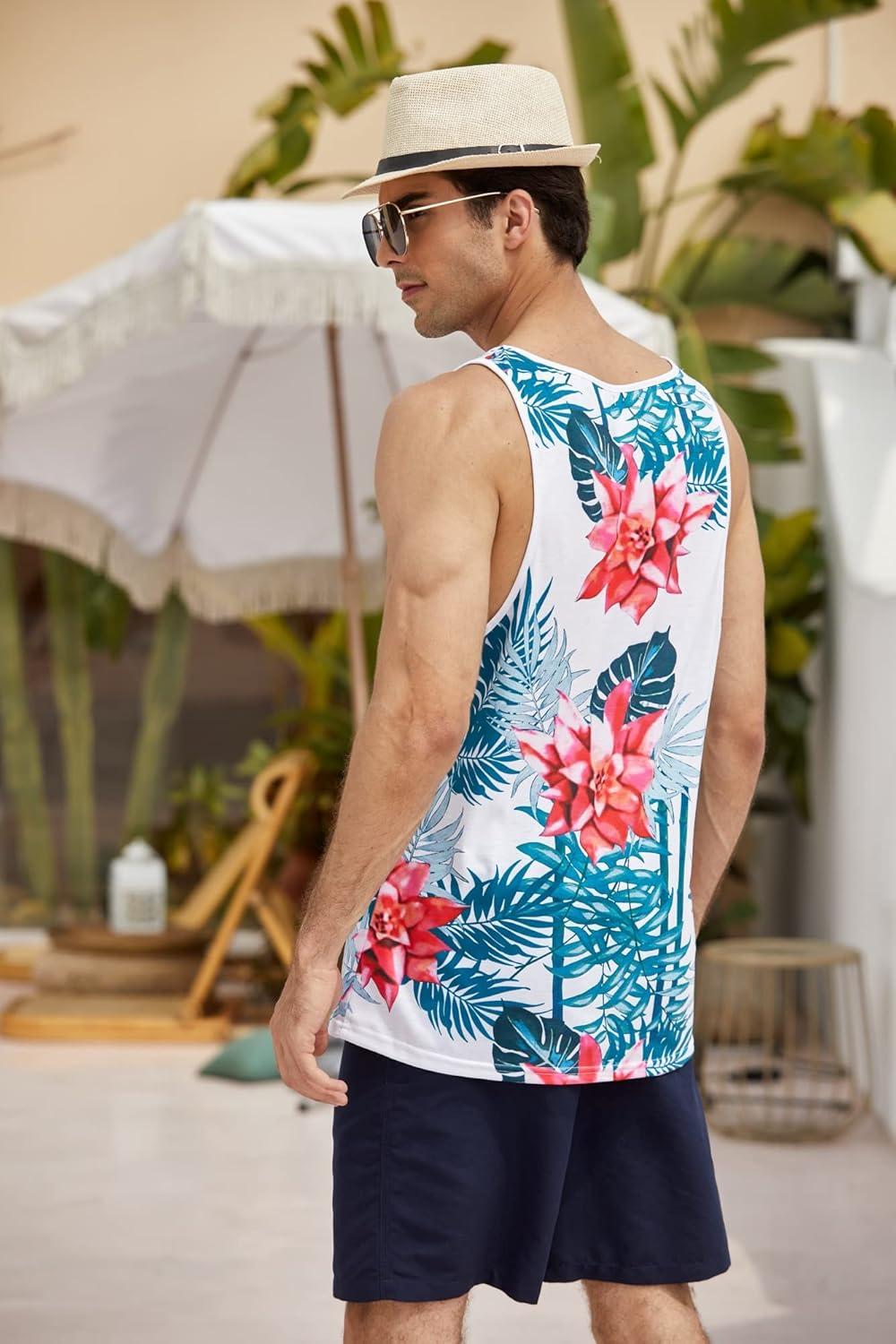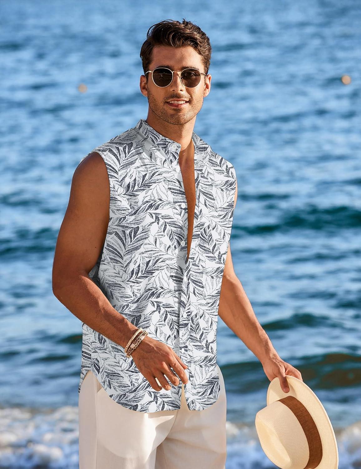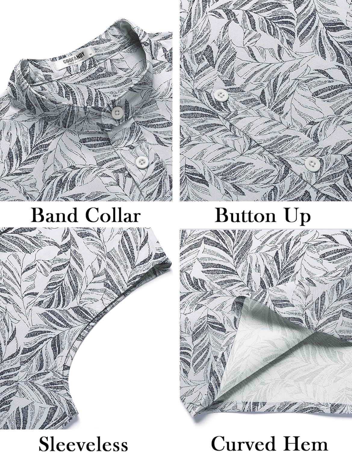 COOFANDY Sleeveless Beach Shirts for Men Summer Tank Shirts Casual Henley Tank Top(Green Leaves)
