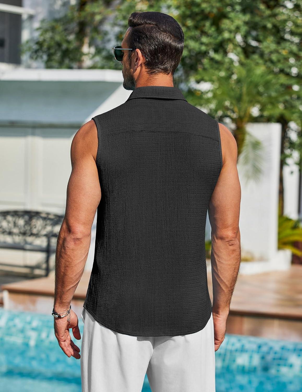 COOFANDY Mens Sleeveless Summer Shirts Beach Tank Tops Button Up Textured Tank Shirt for Vacation(Black)