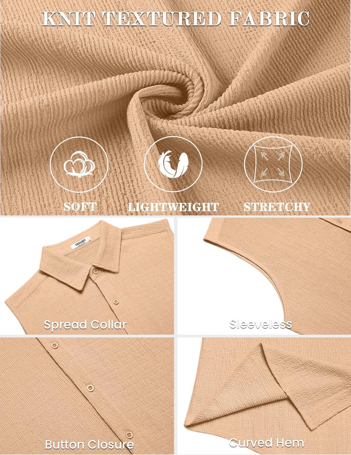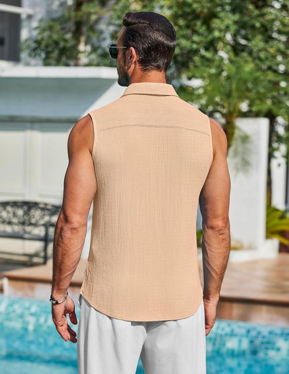 COOFANDY Mens Sleeveless Summer Shirts Beach Tank Tops Button Up Textured Tank Shirt for Vacation(Khaki)