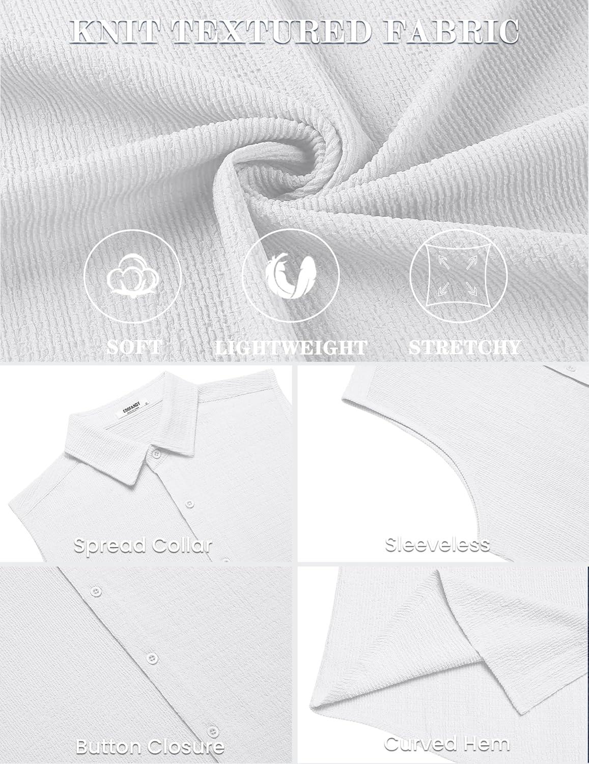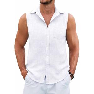 COOFANDY Mens Sleeveless Summer Shirts Beach Tank Tops Button Up Textured Tank Shirt for Vacation(White)