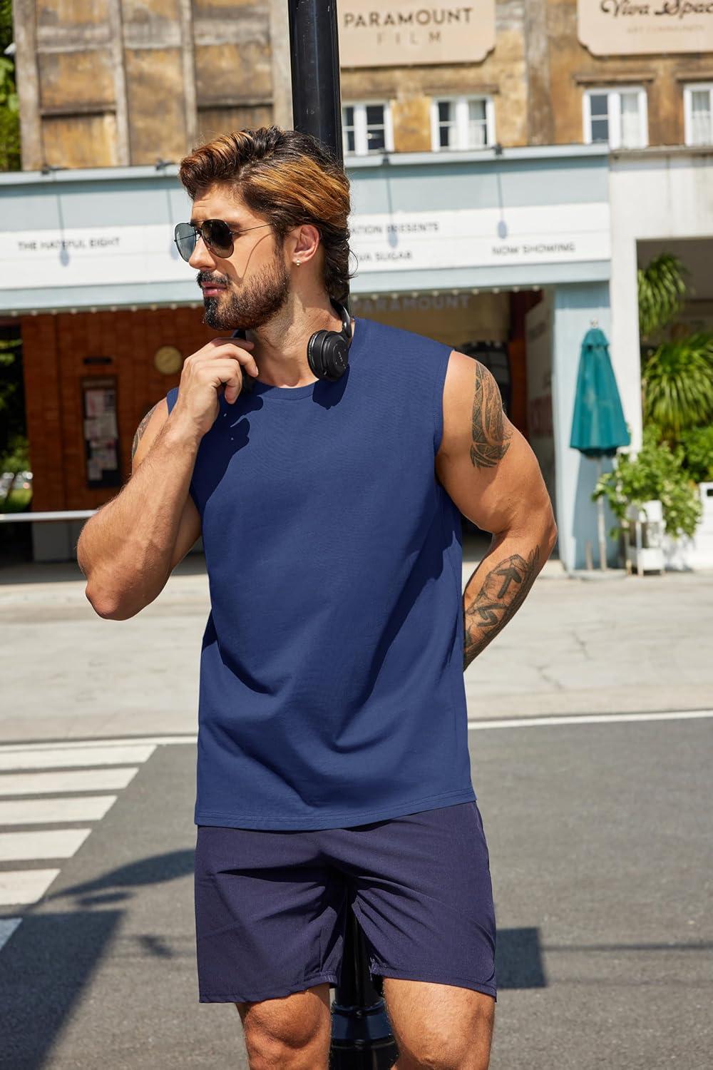 COOFANDY Mens Casual Tank Tops Moisture Wicking Muscle Sleeveless Shirts Soft Bamboo Viscose Tank Shirt 2 Pack(Blue/Navy Blue)