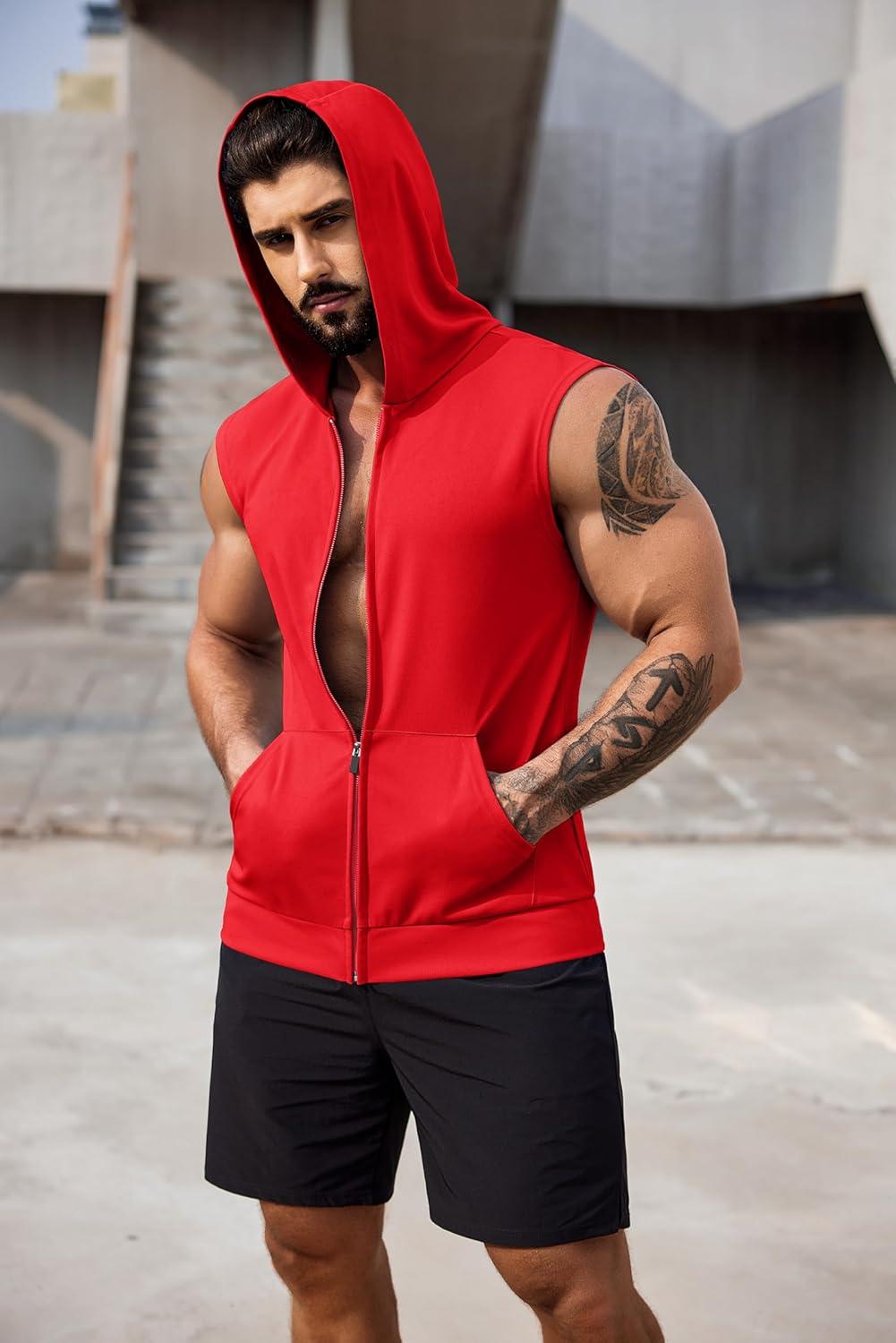 COOFANDY Men’s 3 Pack Workout Tank Tops Gym Muscle Tee Bodybuilding Fitness Sleeveless T Shirts(Black/Dark Grey/Red)