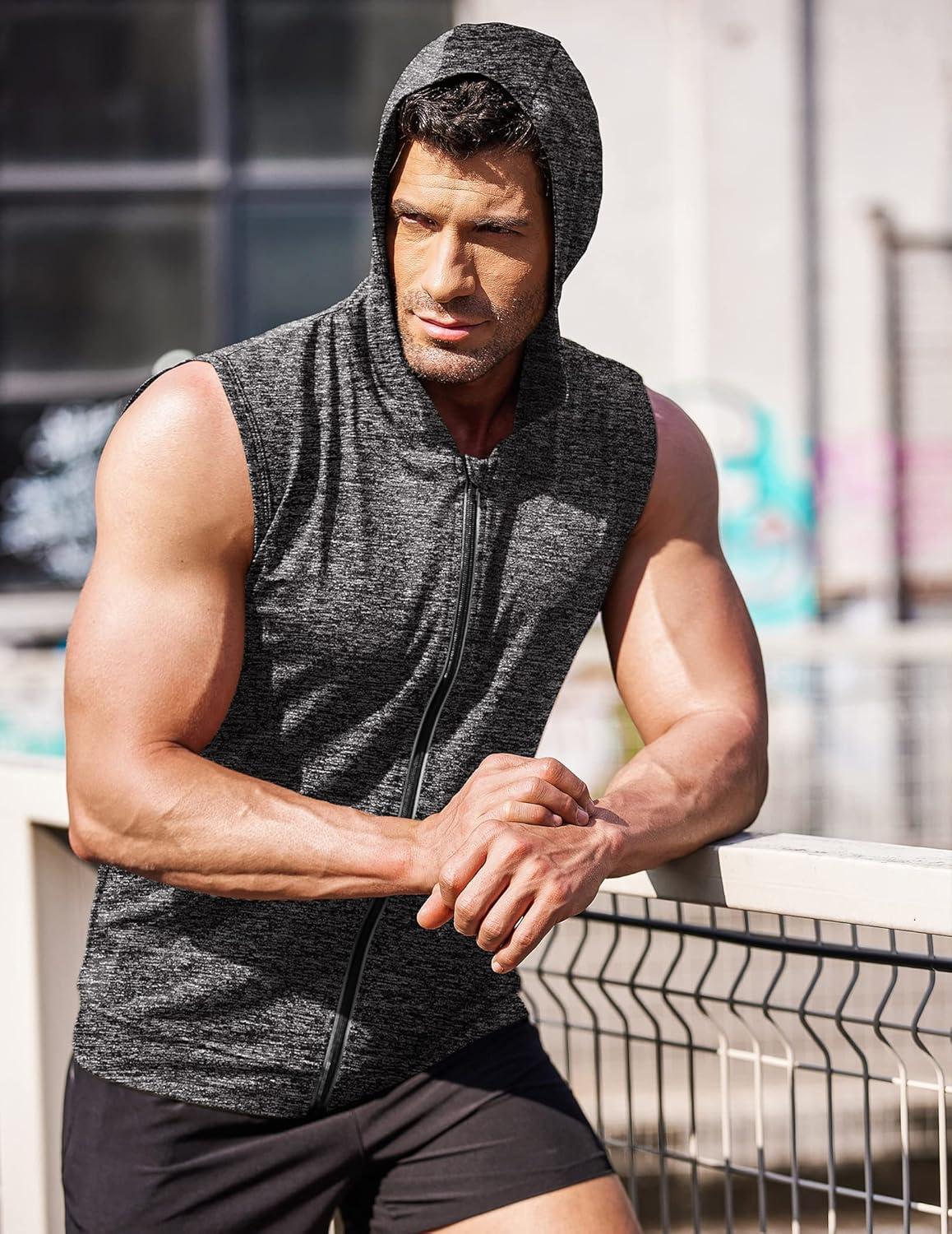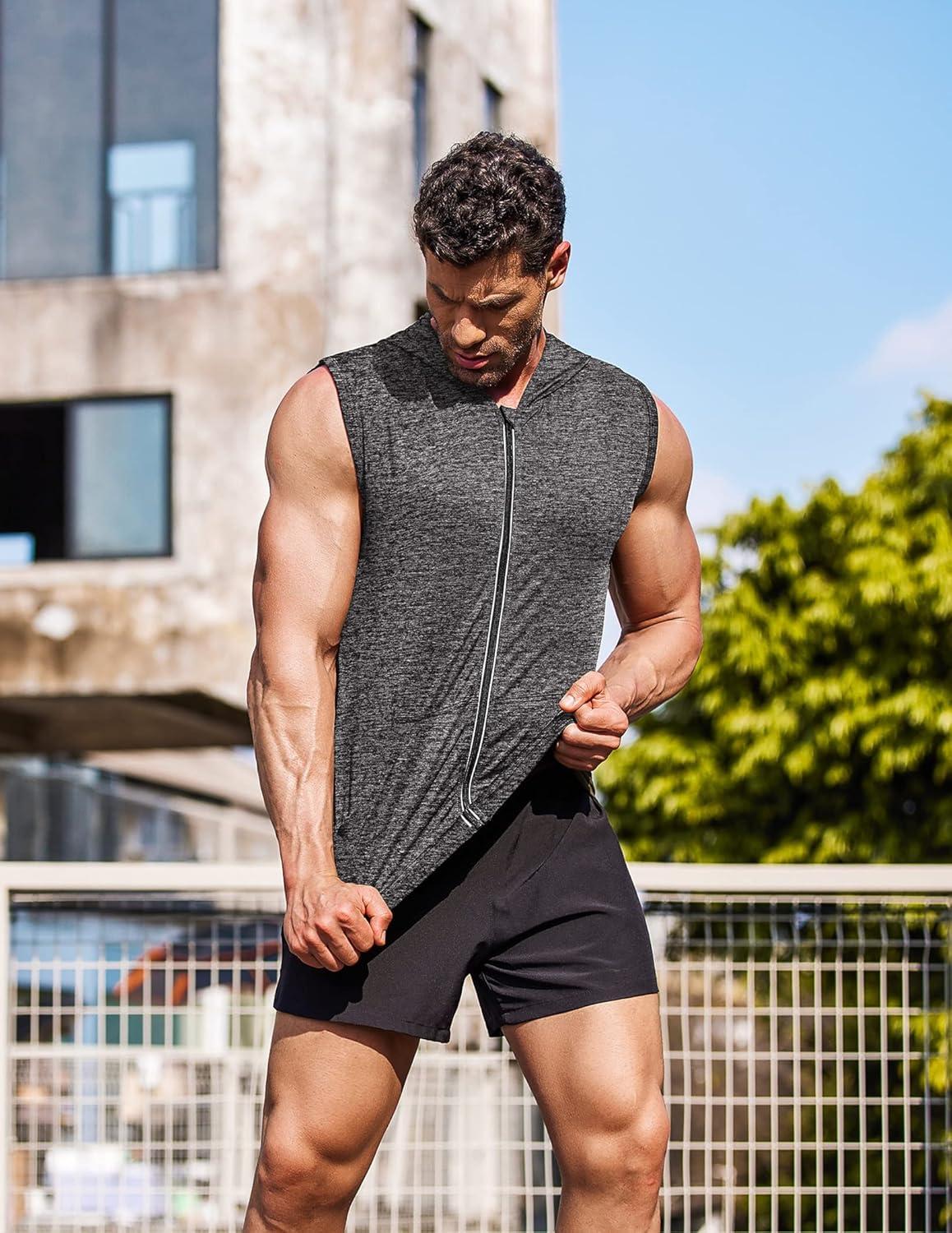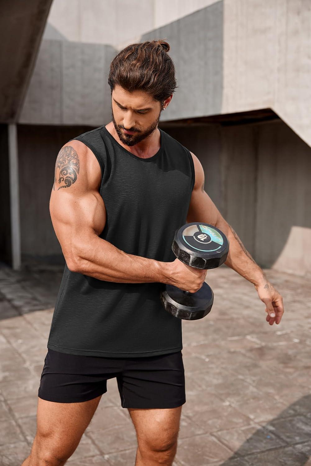 COOFANDY Mens Tank Top UPF 50+ Quick Dry Sleeveless Shirts Summer Workout Muscle T Shirt Cool Swim Beach Top(Black/Light Grey)