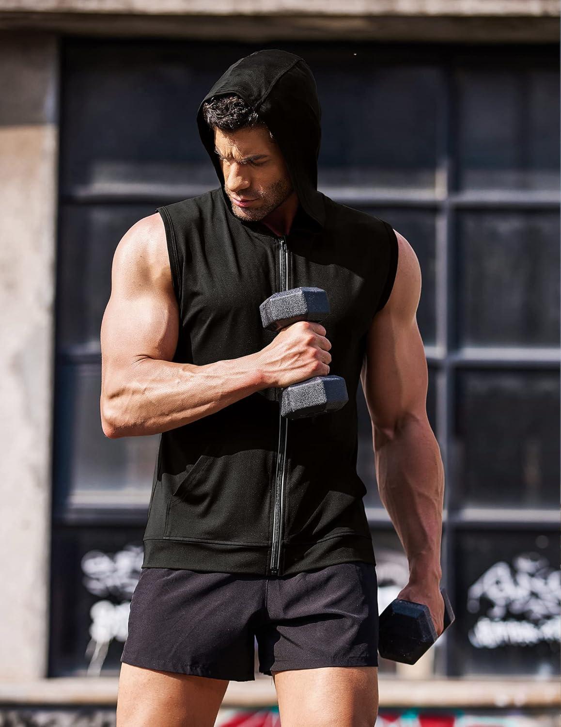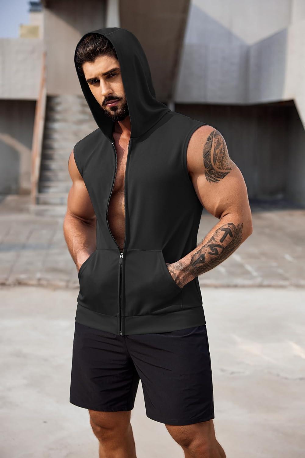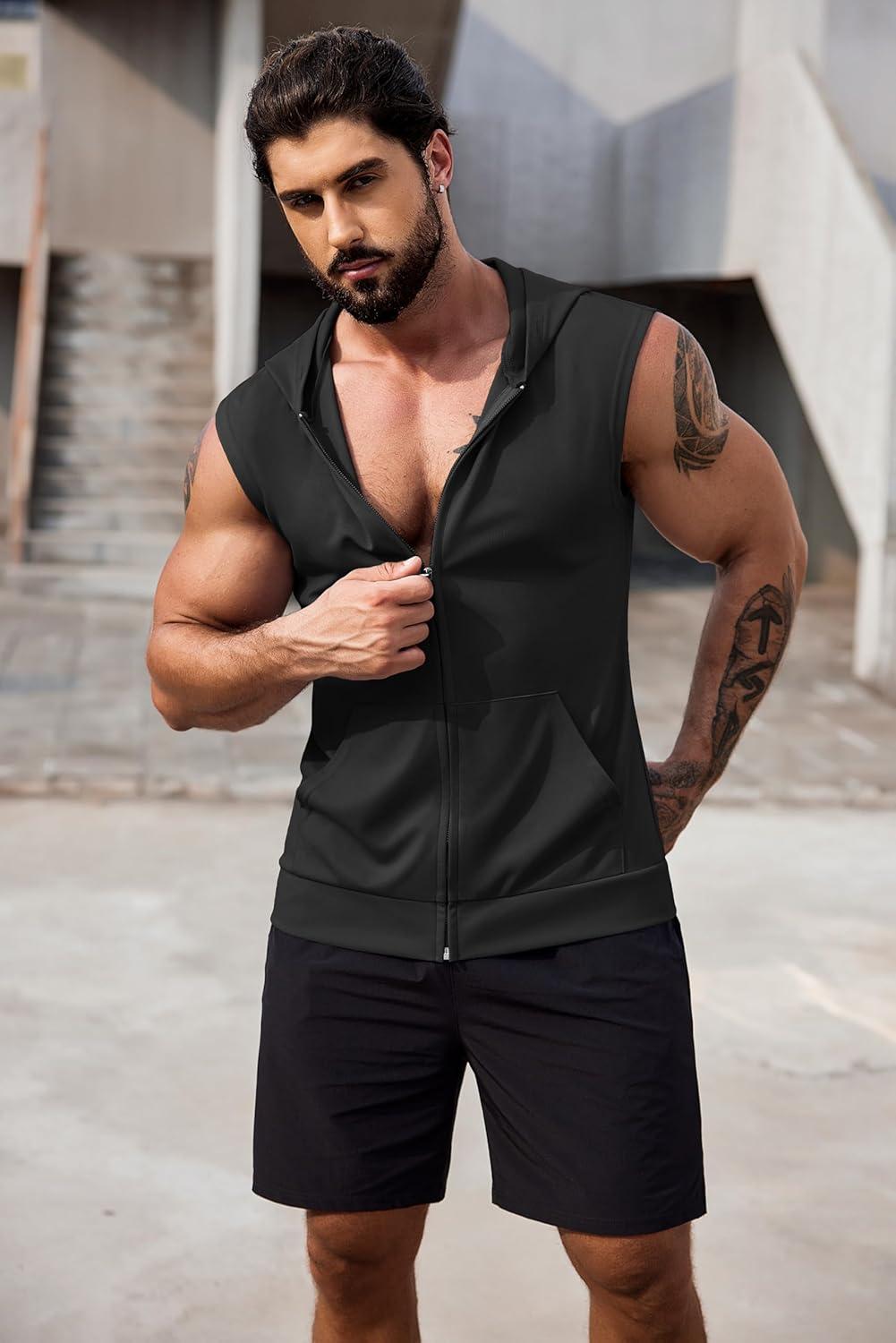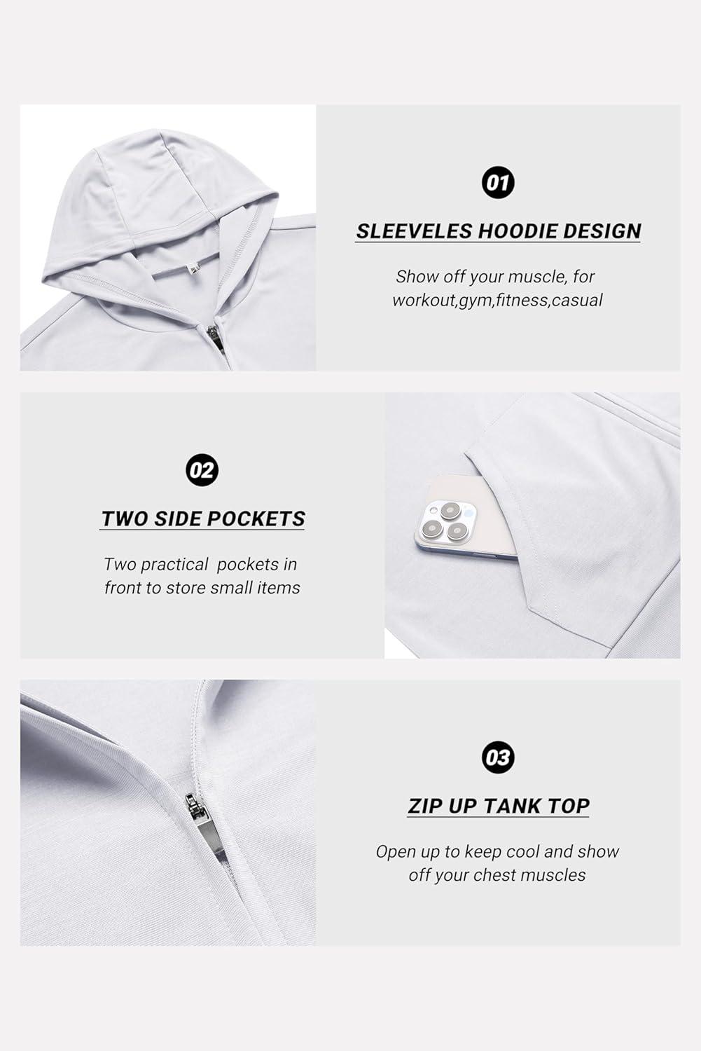 COOFANDY Mens Tank Top UPF 50+ Quick Dry Sleeveless Shirts Summer Workout Muscle T Shirt Cool Swim Beach Top(Black/Light Grey)