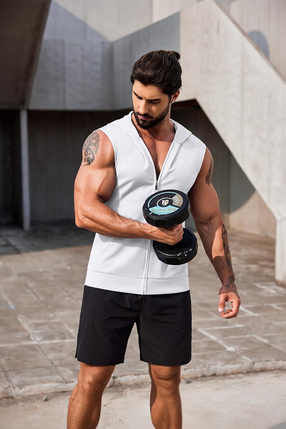 COOFANDY Men’s Workout Tank Tops 1/2 Pack Dry Fit Sleeveless Muscle Gym Shirts Stretch Bodybuilding Tee(White)
