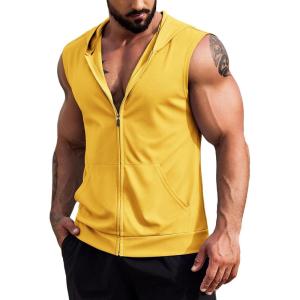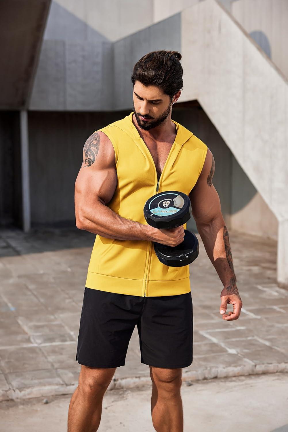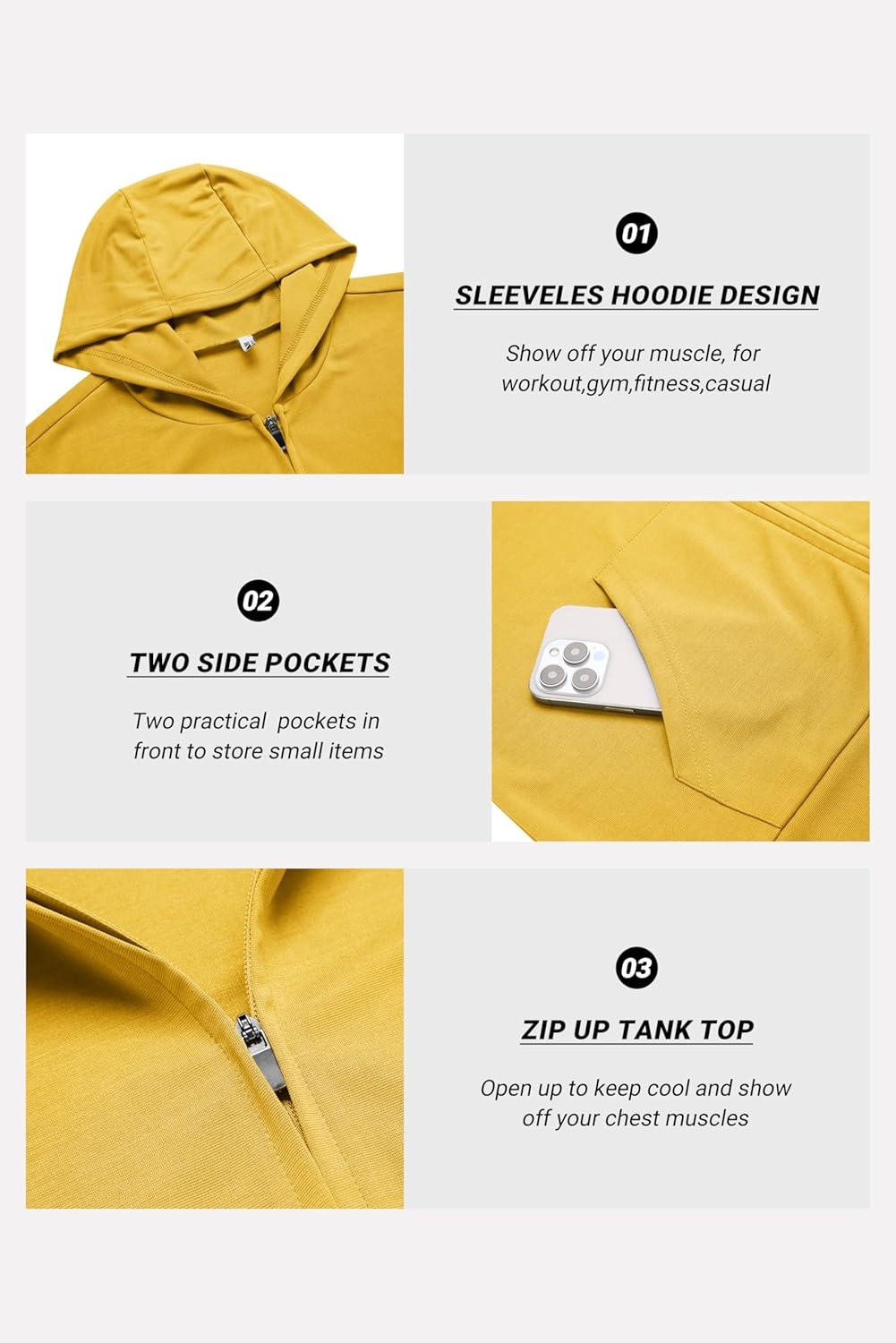 COOFANDY Mens Tank Top UPF 50+ Quick Dry Sleeveless Shirts Summer Workout Muscle T Shirt Cool Swim Beach Top(Yellow/Blue)