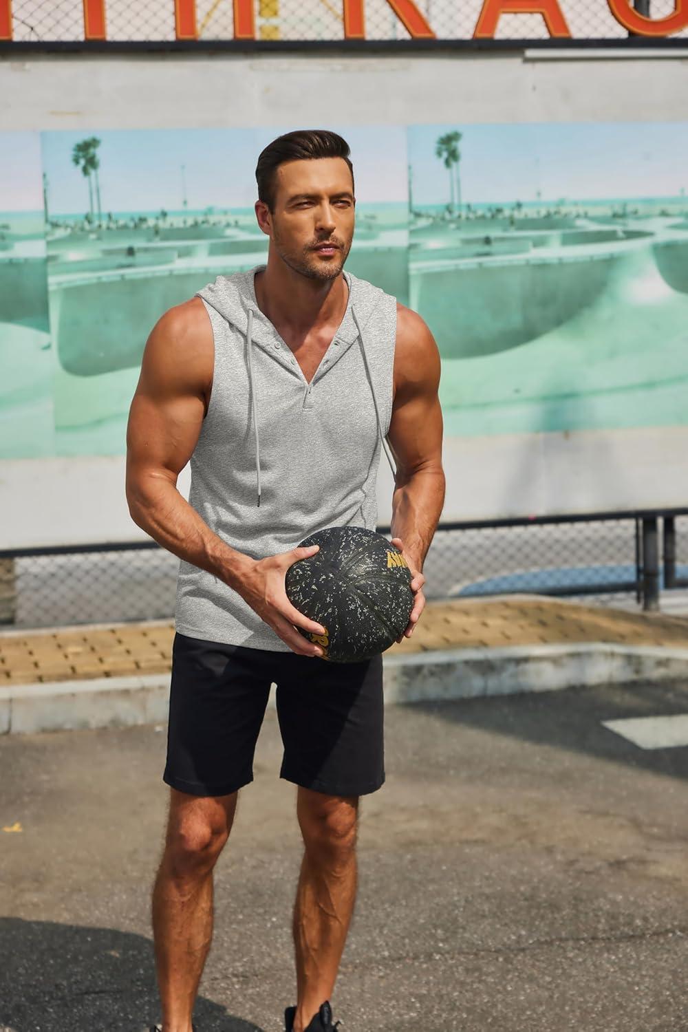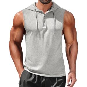 COOFANDY Men’s Casual Tank Top Sleeveless Henley Shirts Muscle Fit T Shirt(01-light Grey(1pcs))