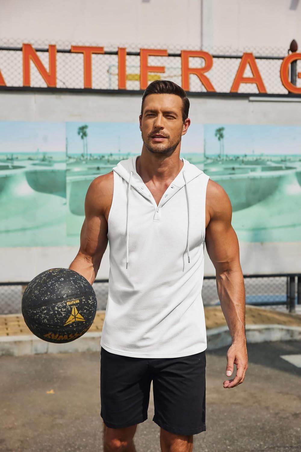 COOFANDY Men’s Casual Tank Top Sleeveless Henley Shirts Muscle Fit T Shirt(01-white(1pcs))