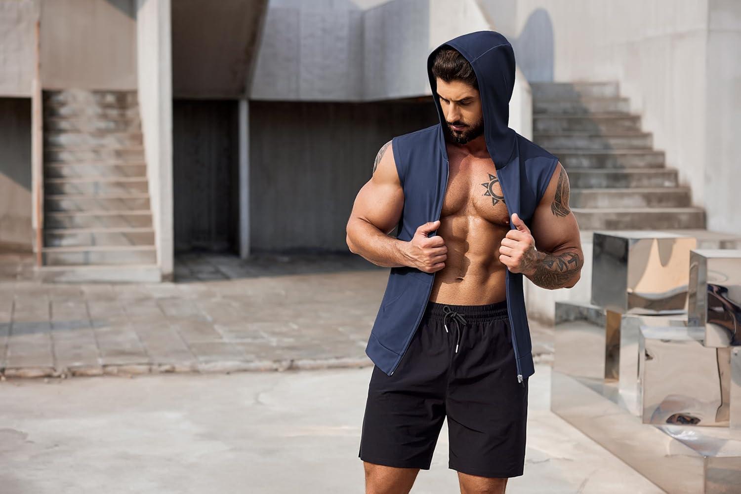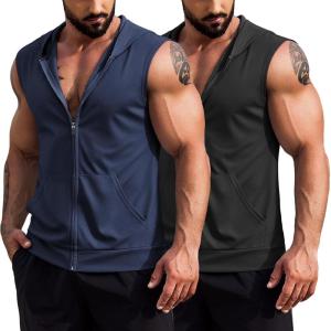 COOFANDY Men’s Workout Tank Tops 1/2 Pack Dry Fit Sleeveless Muscle Gym Shirts Stretch Bodybuilding Tee(Navy)
