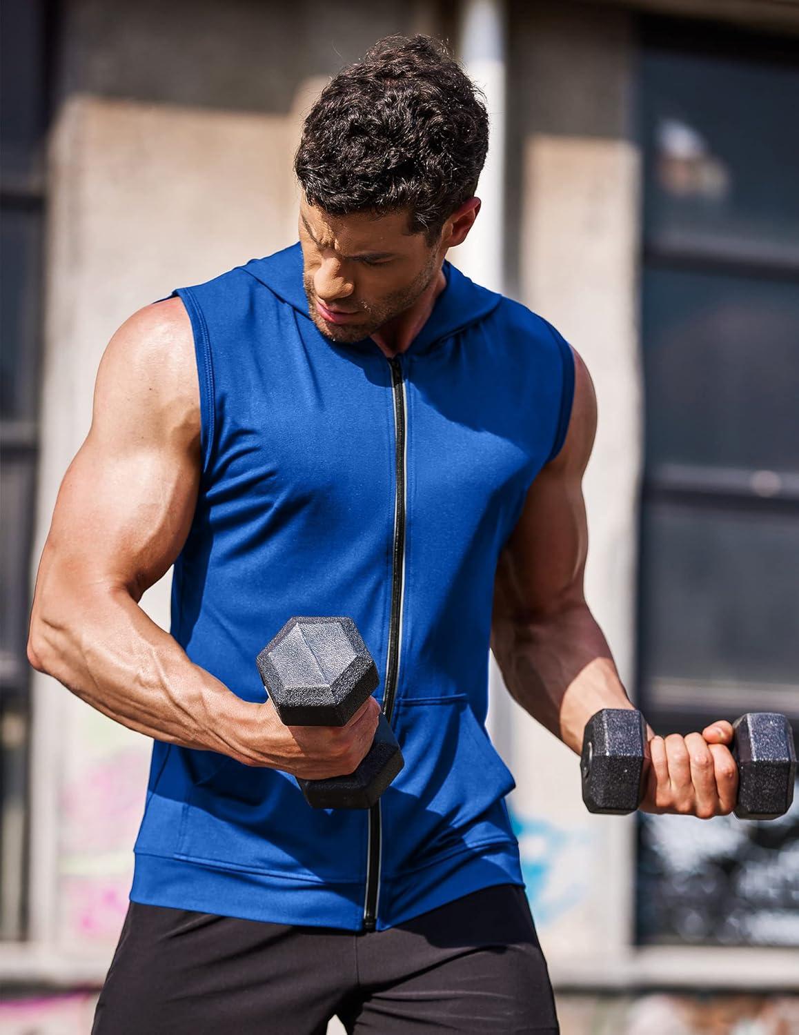 COOFANDY Men’s 3 Pack Workout Tank Tops Gym Muscle Tee Bodybuilding Fitness Sleeveless T Shirts(Blue/White/Grey)