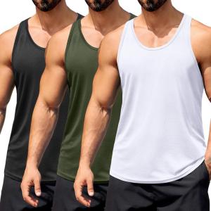 COOFANDY Men’s 3 Pack Workout Tank Tops Quick Dry Gym Sleeveless Muscle T Shirts Y Back Athlectic Tank Bodybuilding Top(Black/Army Green/White)