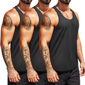 COOFANDY Men’s 3 Pack Workout Tank Tops Quick Dry Gym Sleeveless Muscle T Shirts Y Back Athlectic Tank Bodybuilding Top(Black/Black/Black)