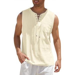 COOFANDY Men Tank Top Cotton Linen Beach Sleeveless Shirt Lace Up Bohemian Hippie Renaissance Pirate Kilt Medieval Tunic(Cream)