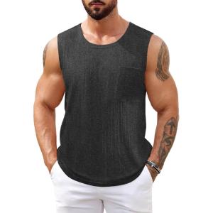 COOFANDY Men’s Casual Tank Tops Knit Sleeveless Shirt Summer Beach Tank Shirt Breathable Muscle T Shirts(Dark Grey)