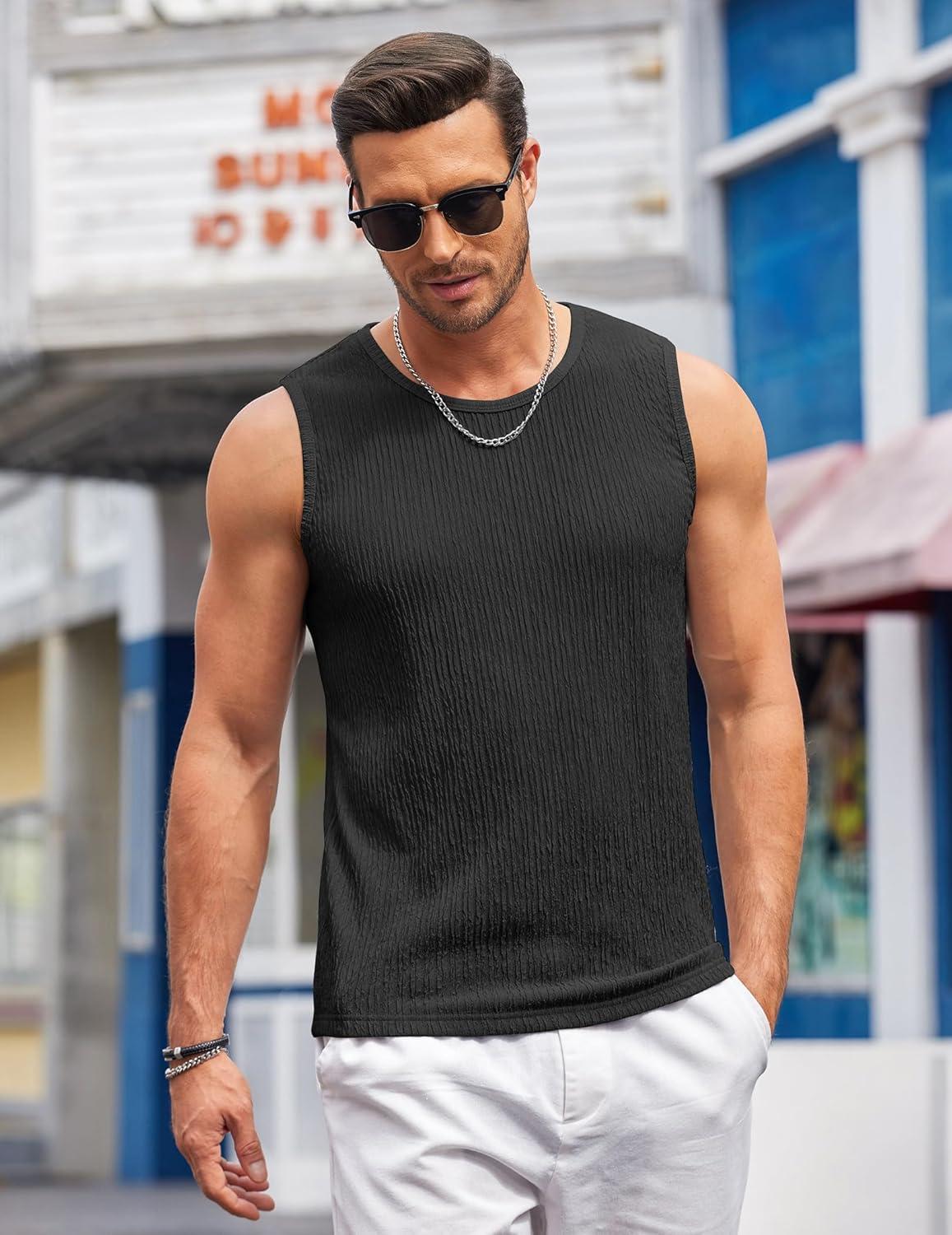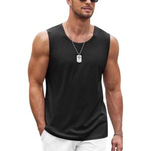 COOFANDY Mens Tank Tops Summer Beach Sleeveless Muscle Shirts Casual Knit Tanks Workout Gym Tee(Black)