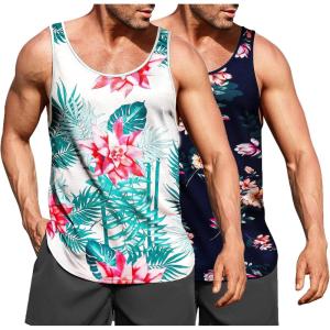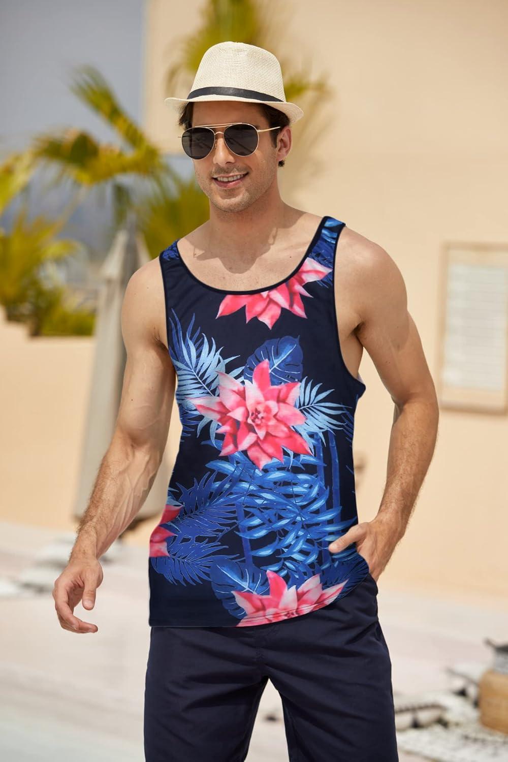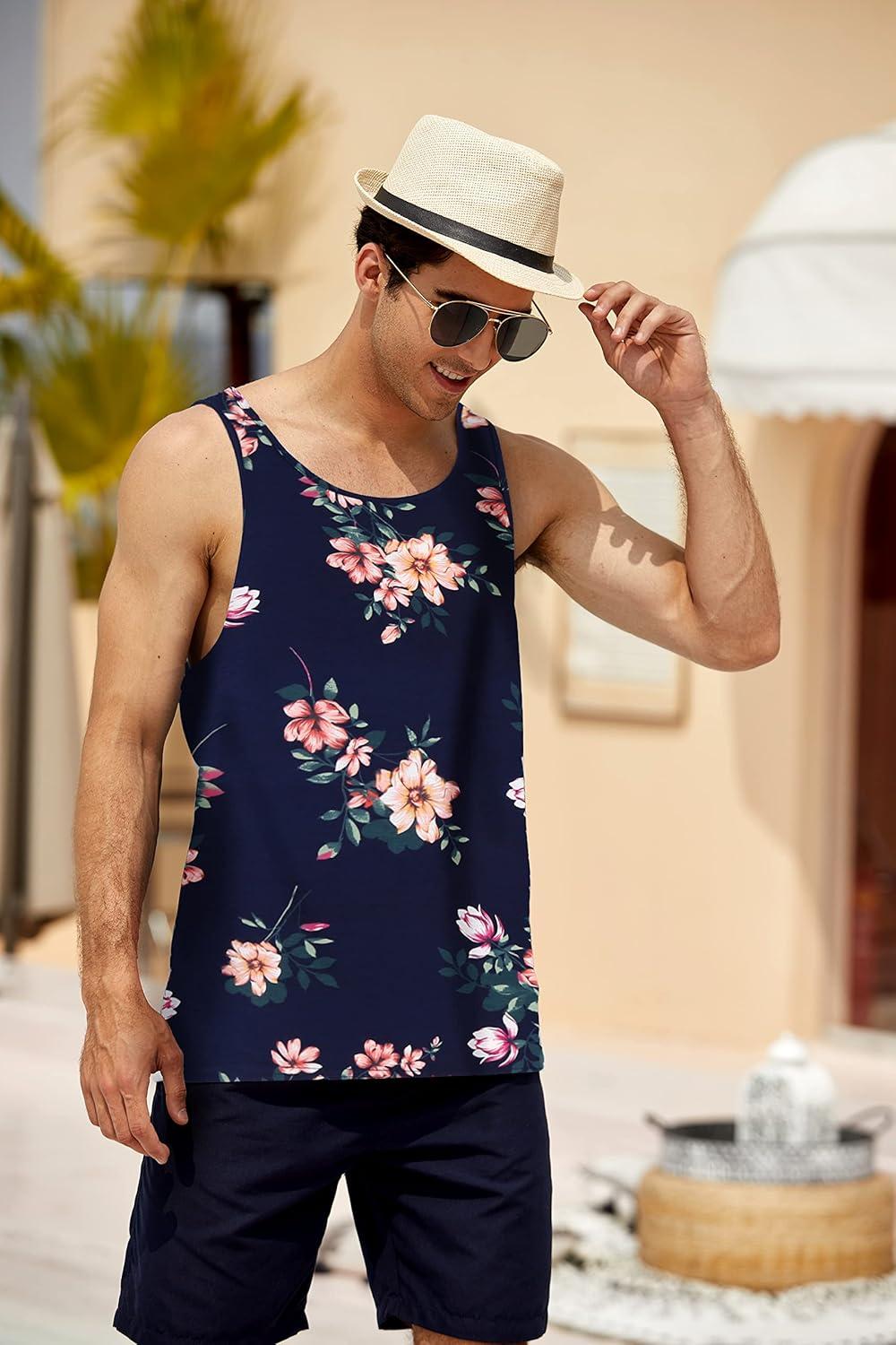 COOFANDY Mens Tank Tops Beach Summer Sleeveless Graphic T Shirts Palm Tree Vacation Quick Dry Muscle Tank(Gray+blue)