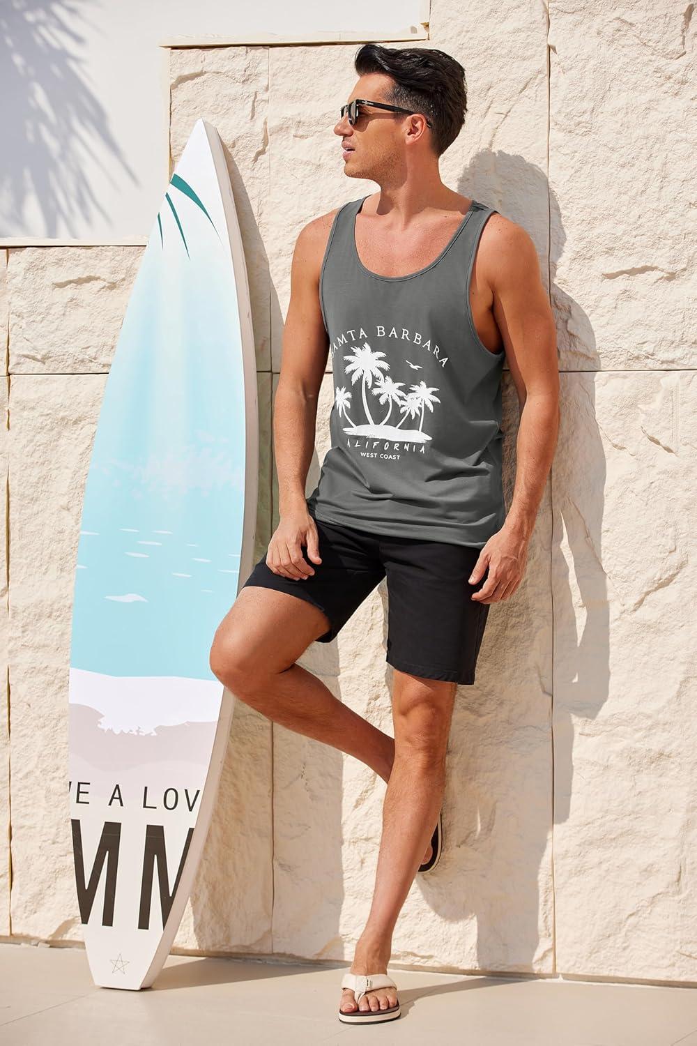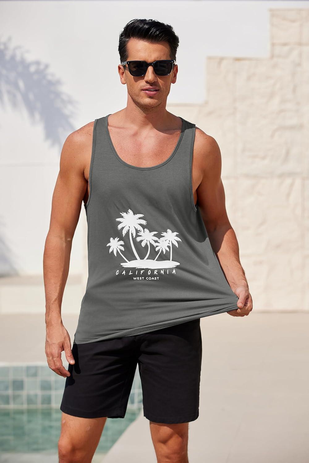 COOFANDY Mens Tank Tops Beach Summer Sleeveless Graphic T Shirts Palm Tree Vacation Quick Dry Muscle Tank(Gray-coconut)