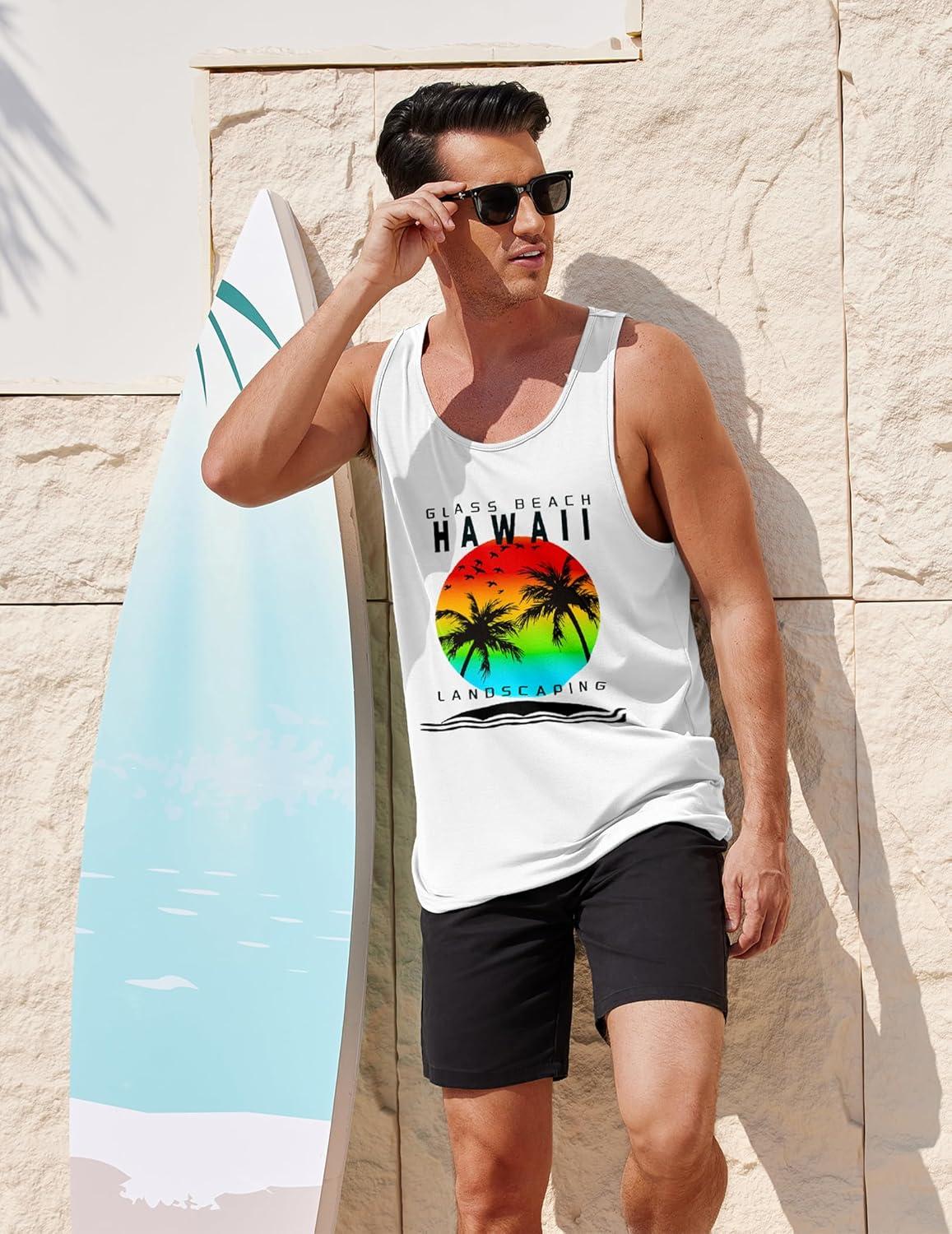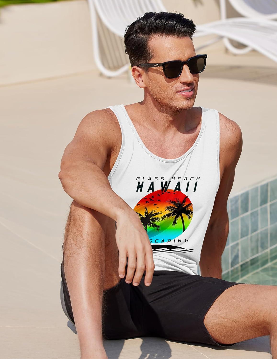 COOFANDY Mens Tank Tops Beach Summer Sleeveless Graphic T Shirts Palm Tree Vacation Quick Dry Muscle Tank(White-hawaii Coconut)