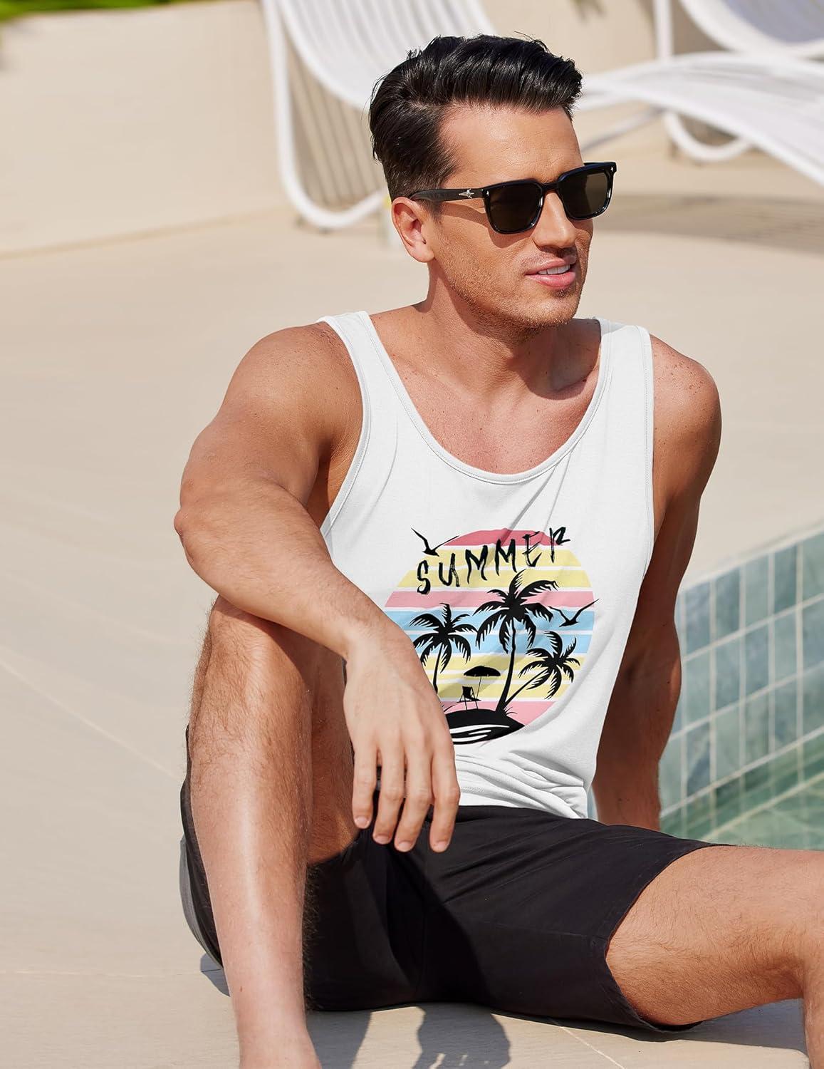 COOFANDY Mens Tank Tops Beach Summer Sleeveless Graphic T Shirts Palm Tree Vacation Quick Dry Muscle Tank(White-coconut)